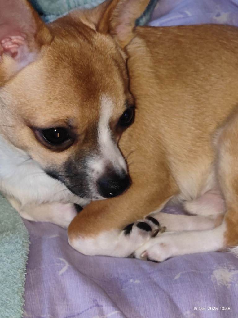 Tan and white touch of chocolate around mouth