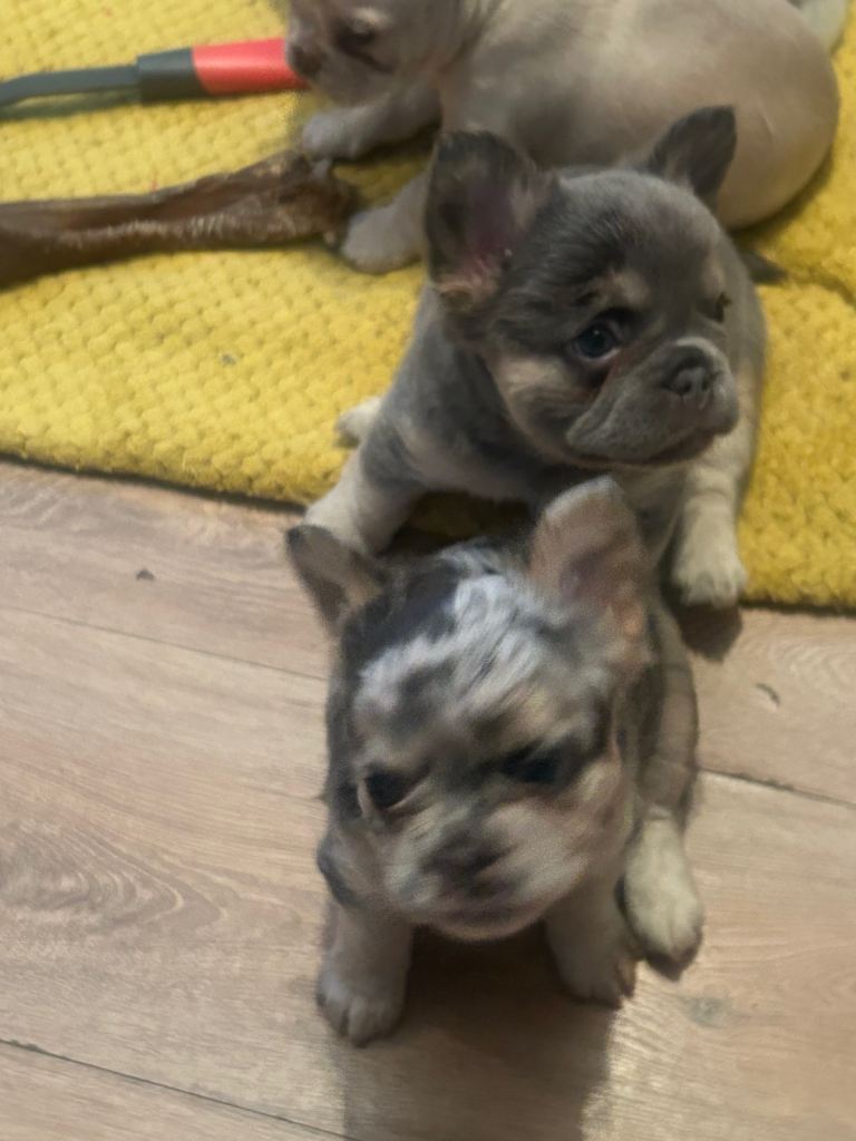 Great Quality fluffy French bulldog pups, 6 weeks old and ready for their new homes in 2 weeks & have been handled by kids..