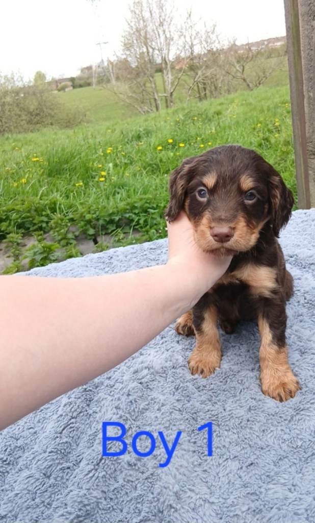 Mum is a springer/cocker, dad is a full cocker. Both can be seen on viewings.