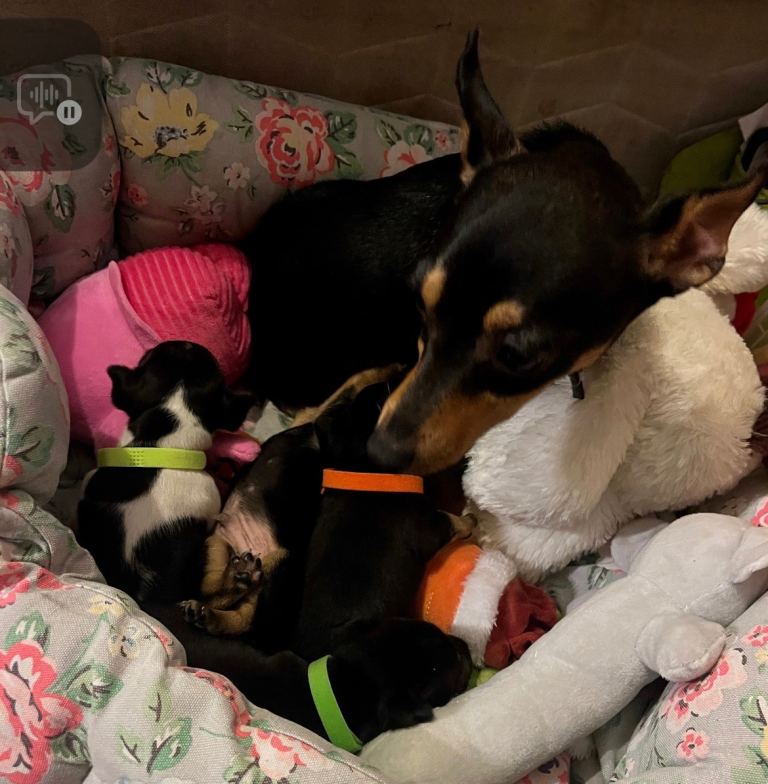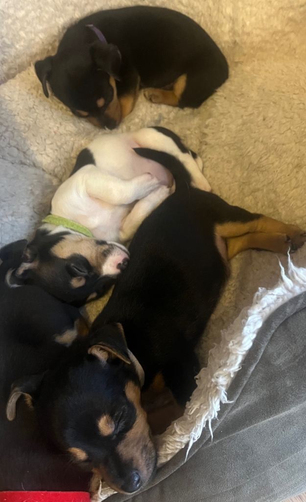 Simone has given birth to her final litter of natural bobtailed Jack Russells. She has given birth to 4 adorable babies 1 little boy and 3 little girls all with their own unique personalities.