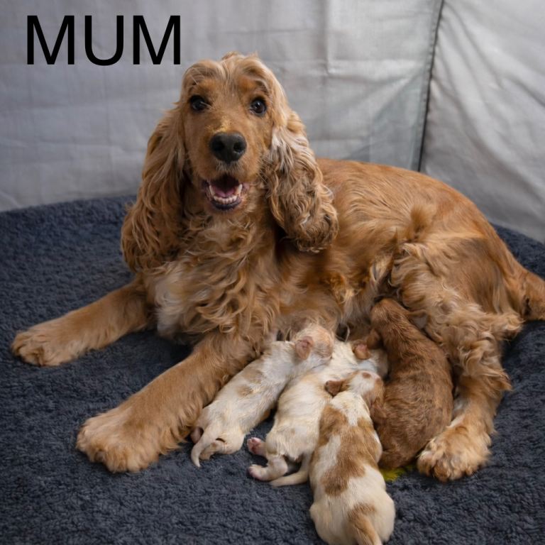 We are proud to announce Kadis & brodys litter of 6 gorgeous show cocker spaniel puppies, born 29th January. Raised in our family home with children and other pets.