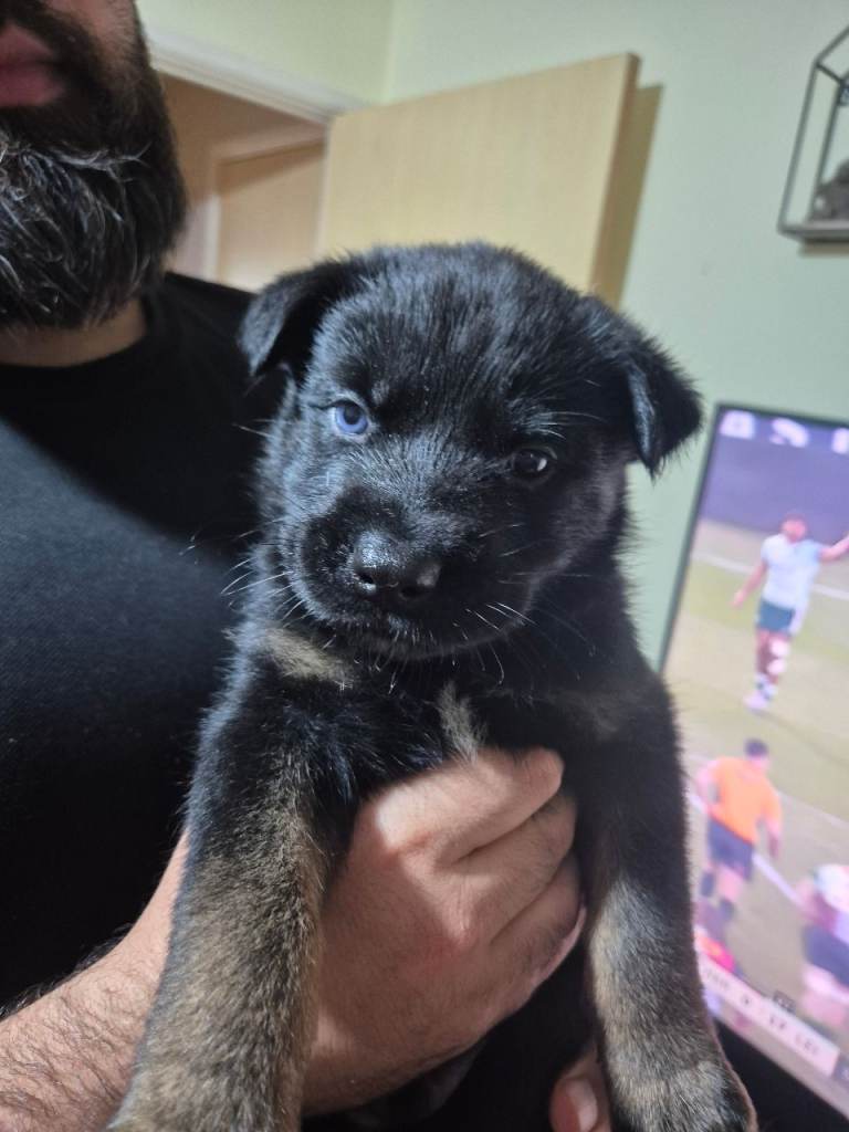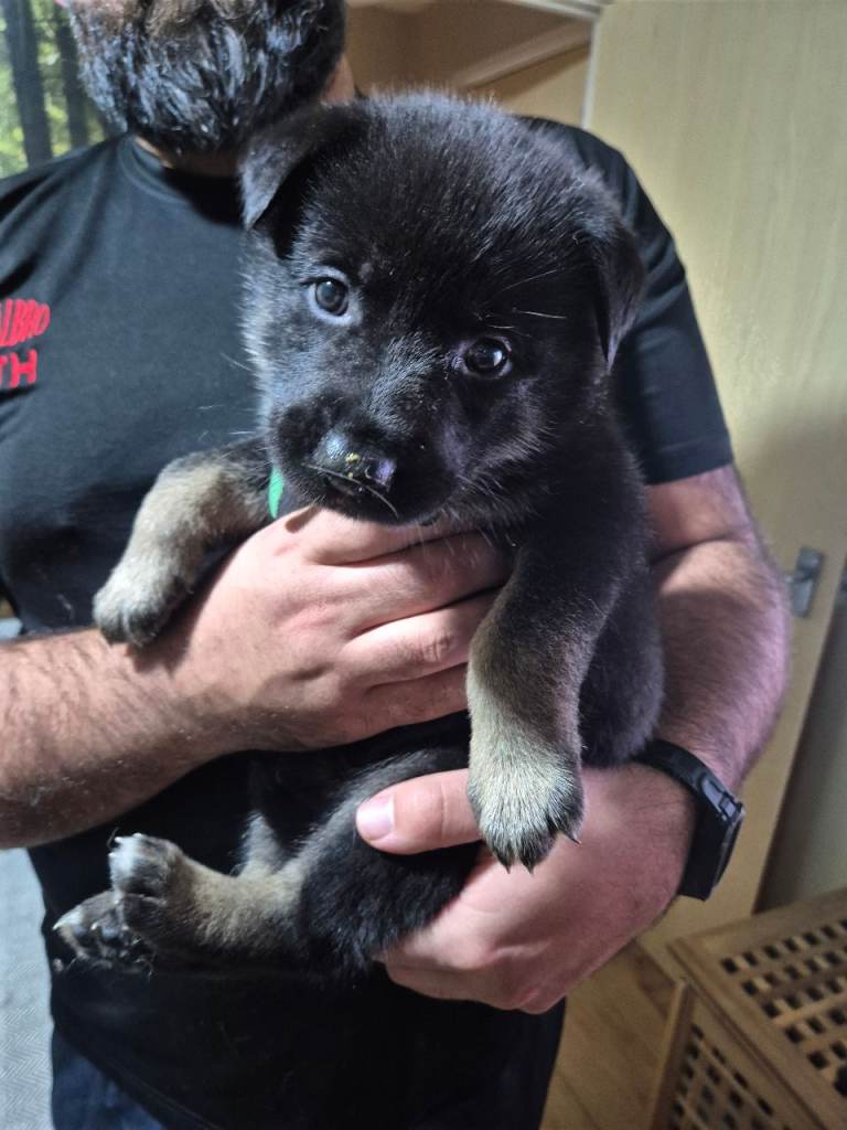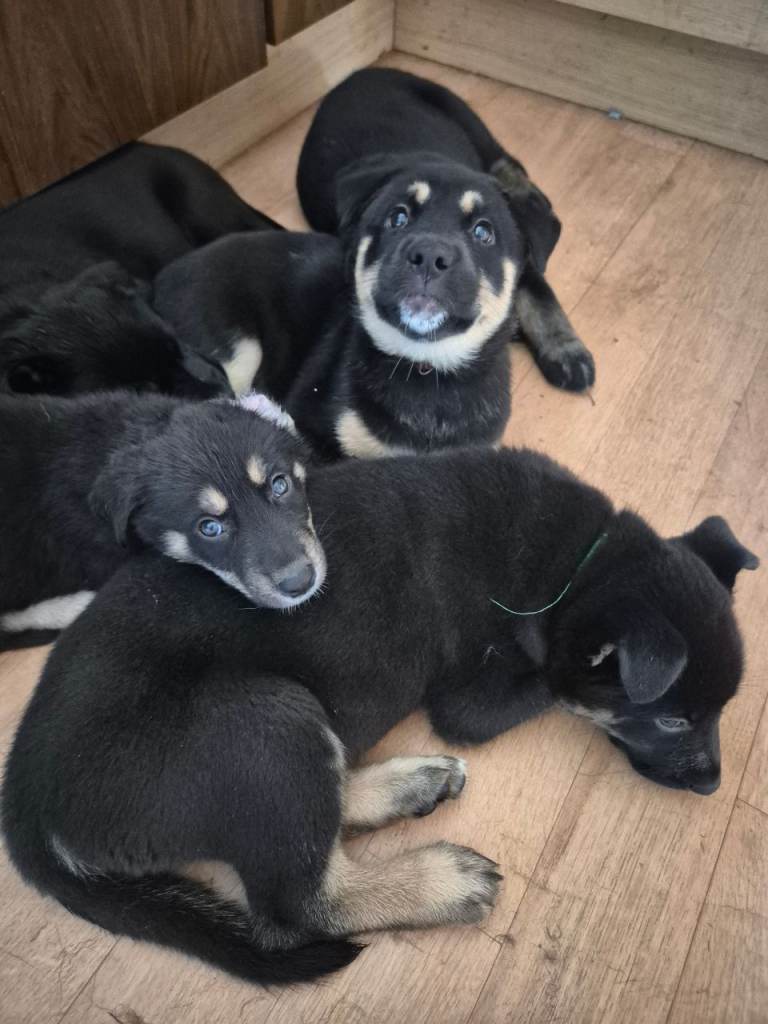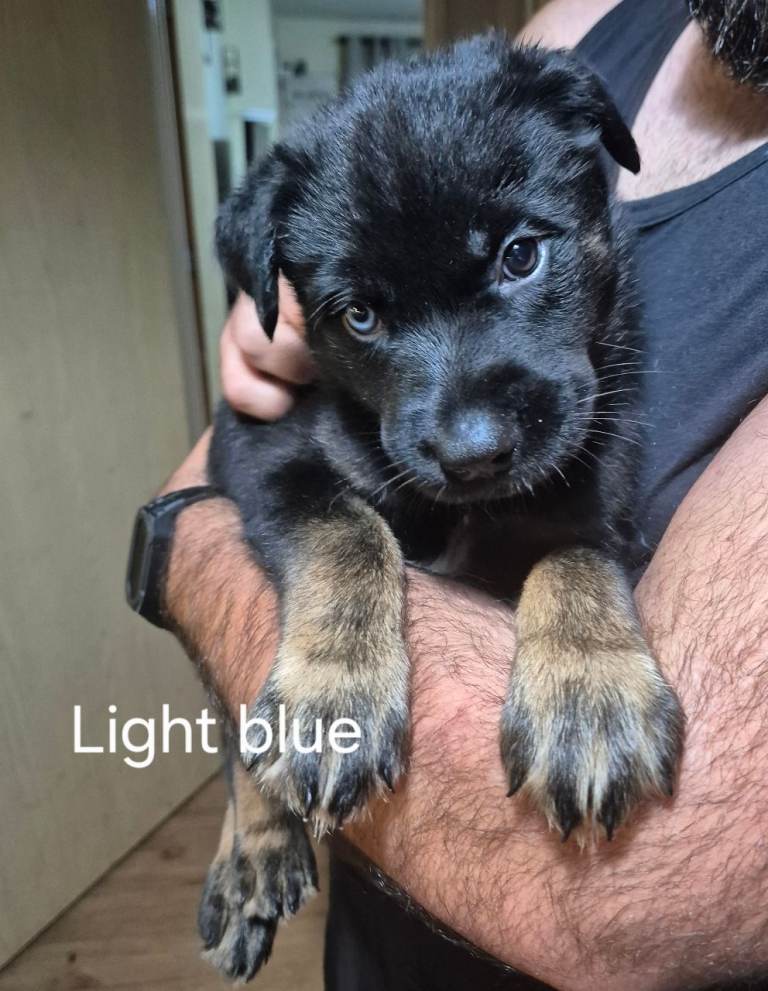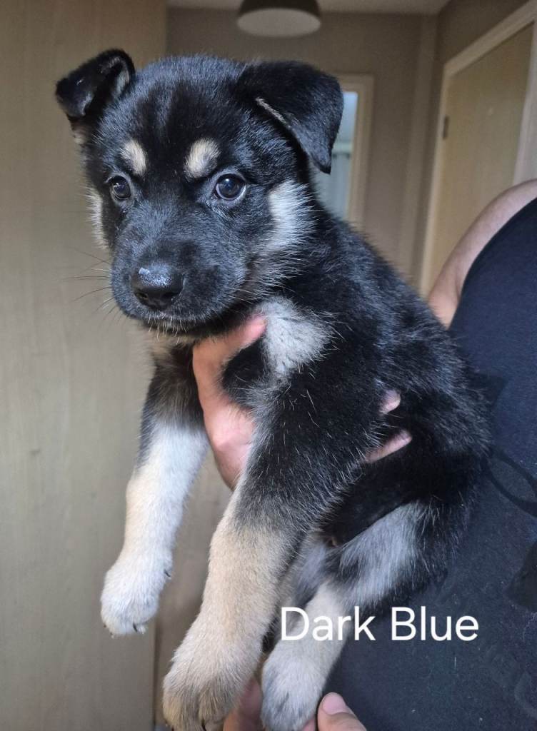 The puppies will be medium to large in size when fully grown. Both parents available to view. 4 females and 2 males. Males are Light blue and Orange.