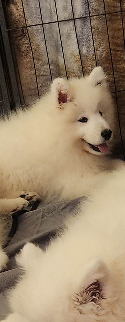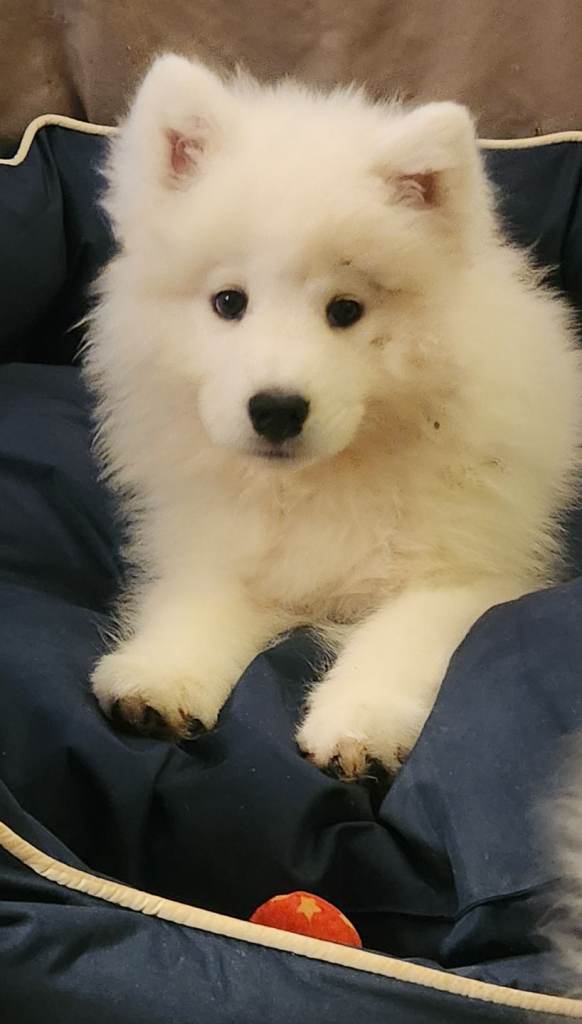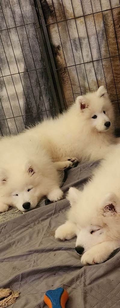 We have beautiful female Samoyed puppies available, all thriving and growing into confident little characters. They display the classic Samoyed traits—gentle, playful, and affectionate.