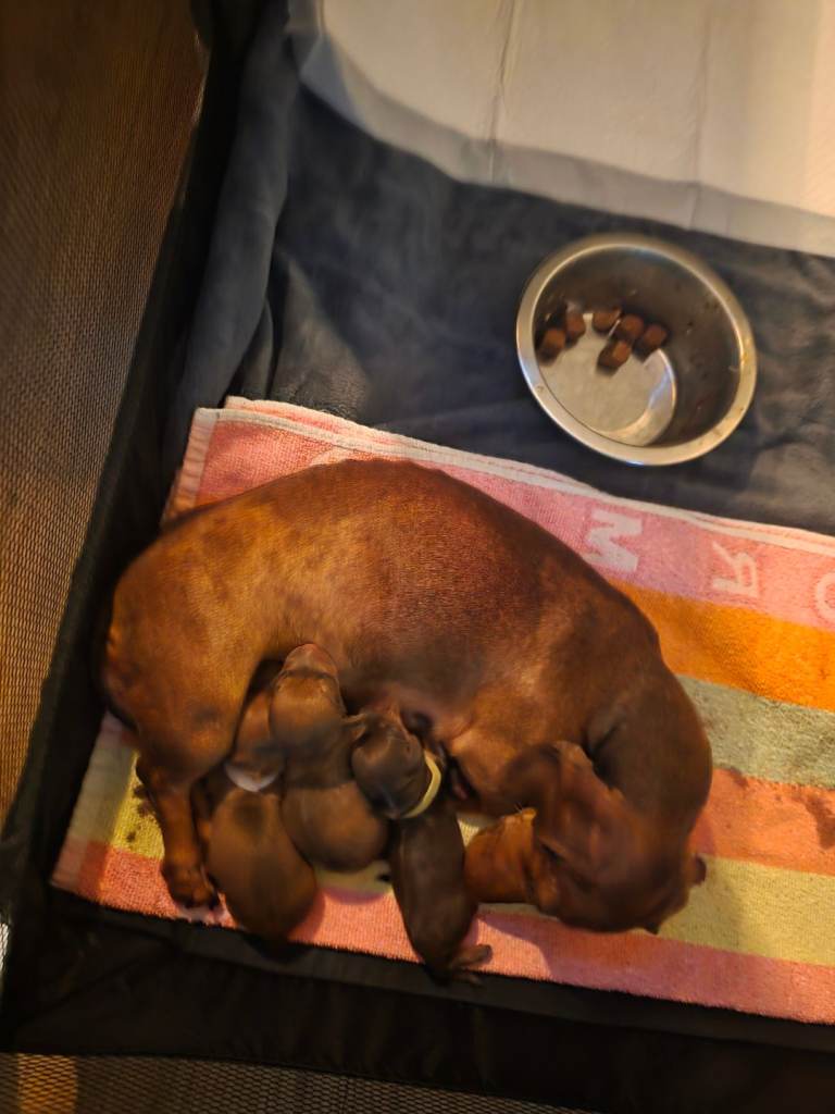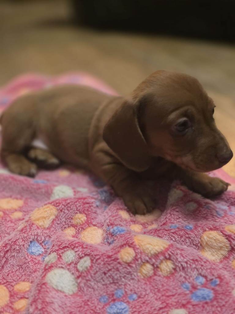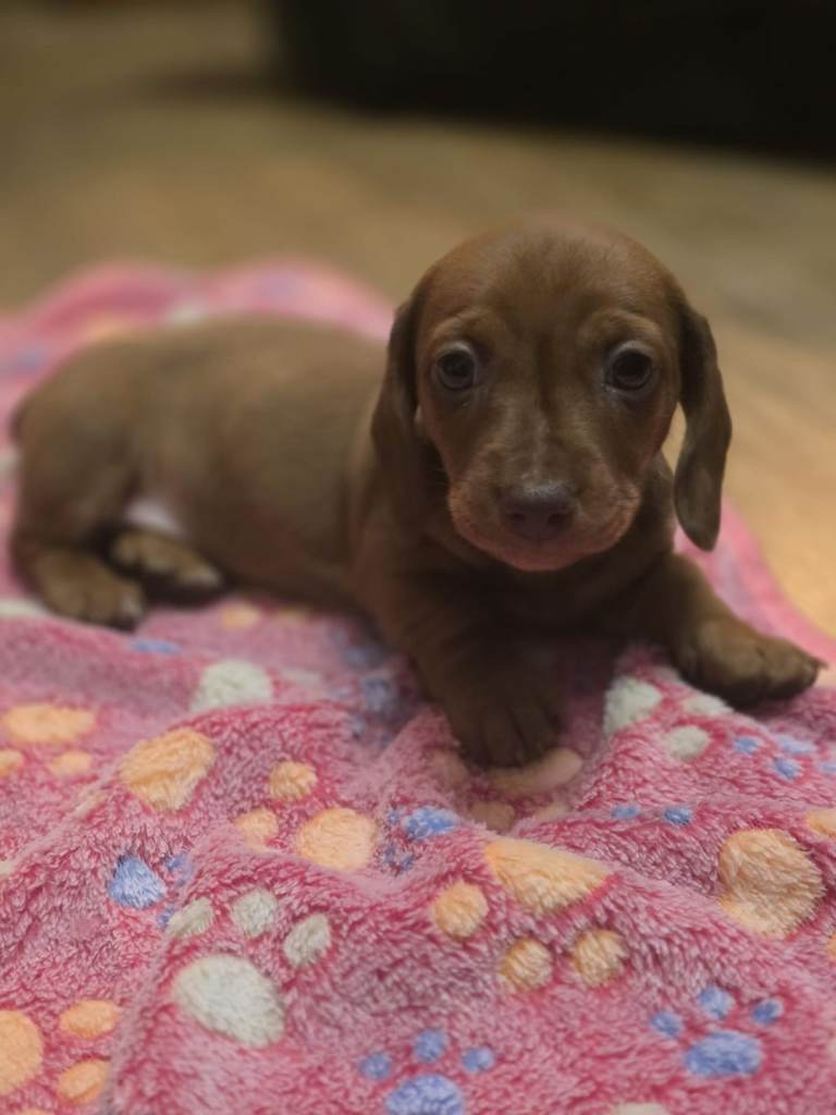Here for sale my lovely litter of daschund puppies currently 7 weeks old will be ready for there forever homes on the 12/3/26 will have there first vaccines and health check done on the 28/2/26 and will come with blanket, bag of food, collar and lead and 5 weeks insurance through kennel club we have
