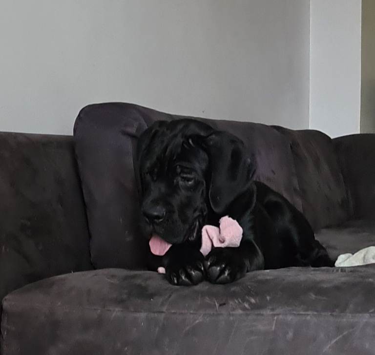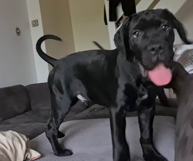 Sire is our black beauty from Slovakia!! he is everything you would expect from a male cane corso, confident, highly intelligent, protective family guardian with the most gentle loving character.
