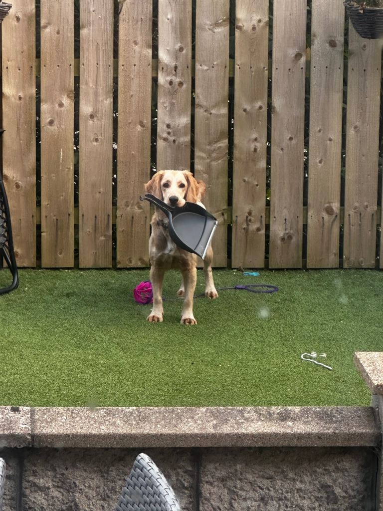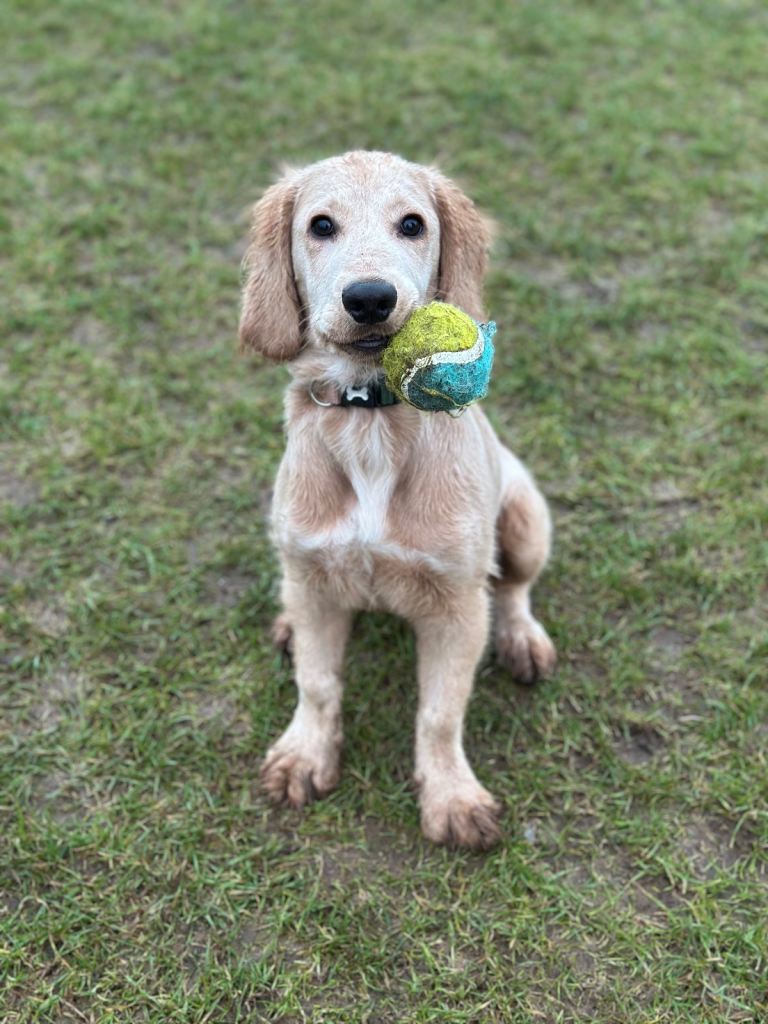 He’s a very loving very active male dog. He was advertised as cockapoo f2 however we think he’s just a spaniel cross.