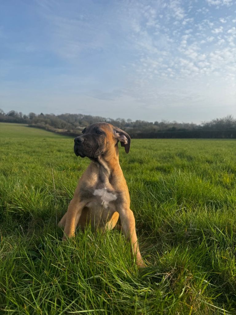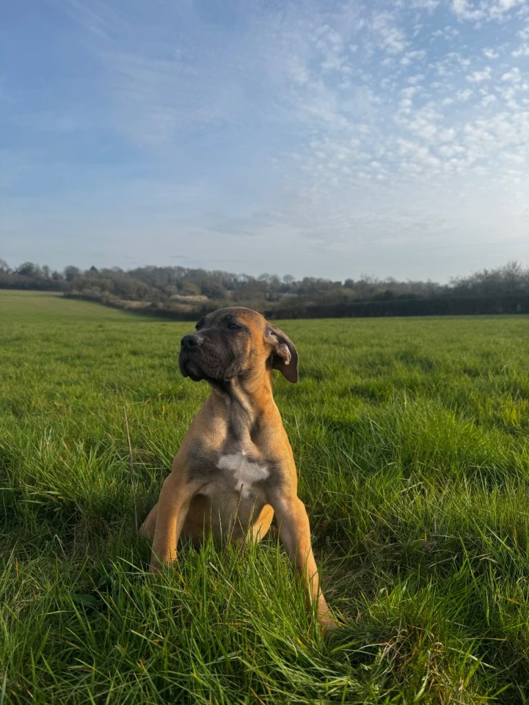 We have 2 beautiful Romanian Brown Fawn Cane Corso puppies available, currently 12 weeks old and ready for their forever homes.