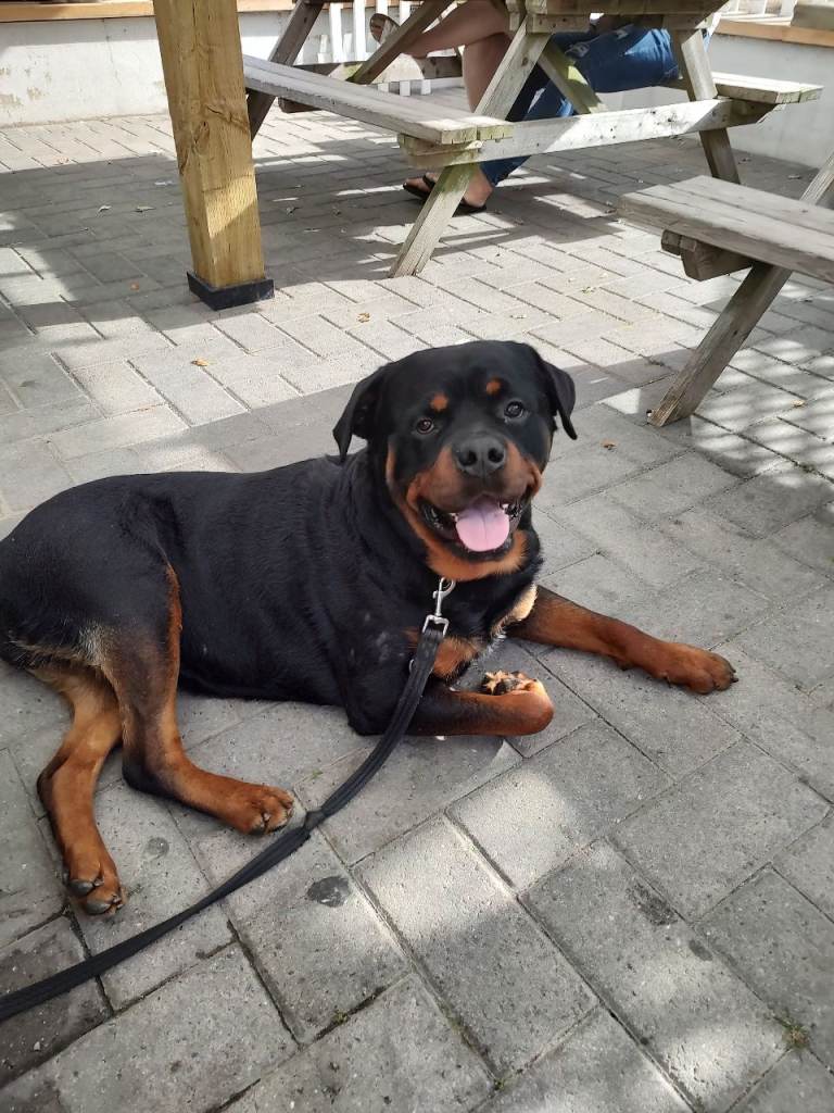4 year old Rottweiler looking for a new home through no fault of his own .I have to move and can't take him with me ...he's soft and looks ving good on the lead good with people good with other animals