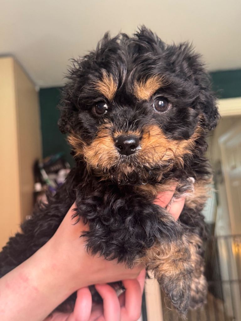 Boy 2 has the Rottweiler markings but is very curly haired and small so he will take after the cavachon size.