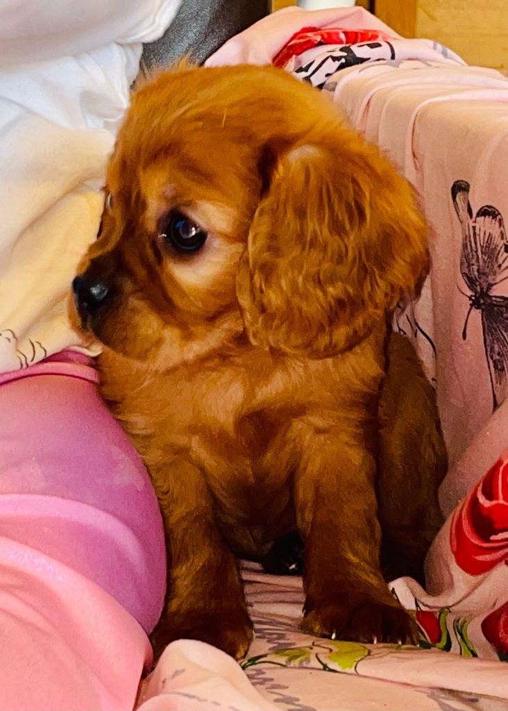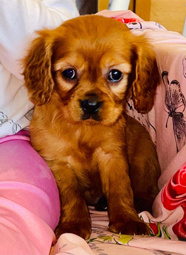 Ember is the more traditional type of the breed with there being the toy types and the traditional type. This means she does not have the extremely short nose and is slightly larger than the toy breed types you might associate with the idea of a King Charles. Having the traditional confirmation is much better for the puppy’s health as it avoids the common eye and breathing issues (brachycephalic) inherent with the toy breed type King Charles.