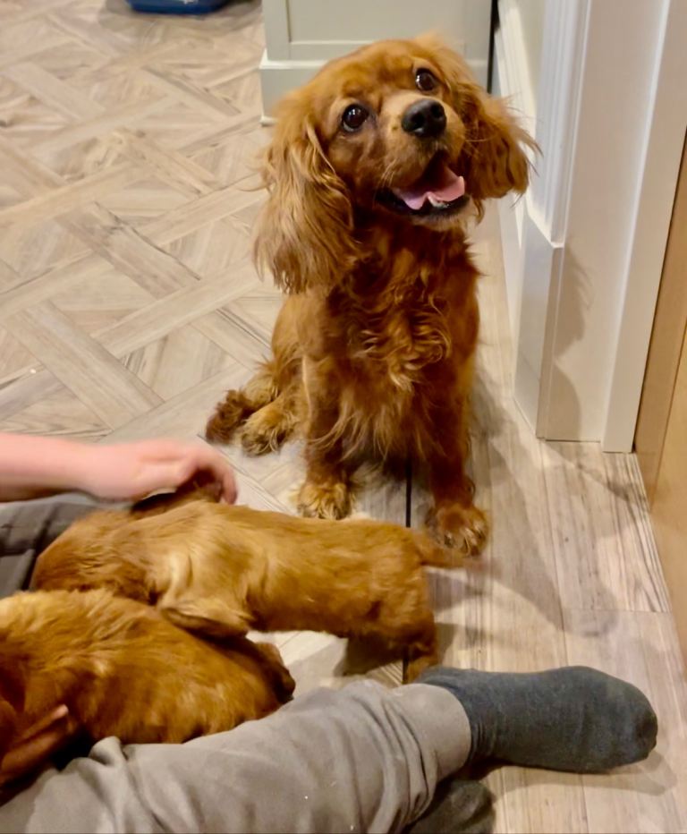 Mother dog is my beautiful 3 year old King Charles named Ember.