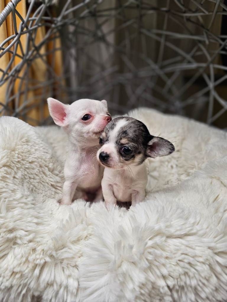 Russian short-hair Chihuahua females, 6 weeks old.