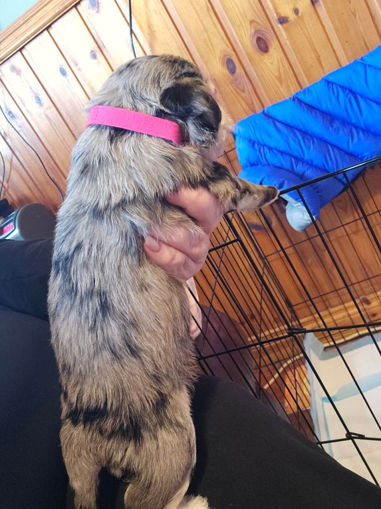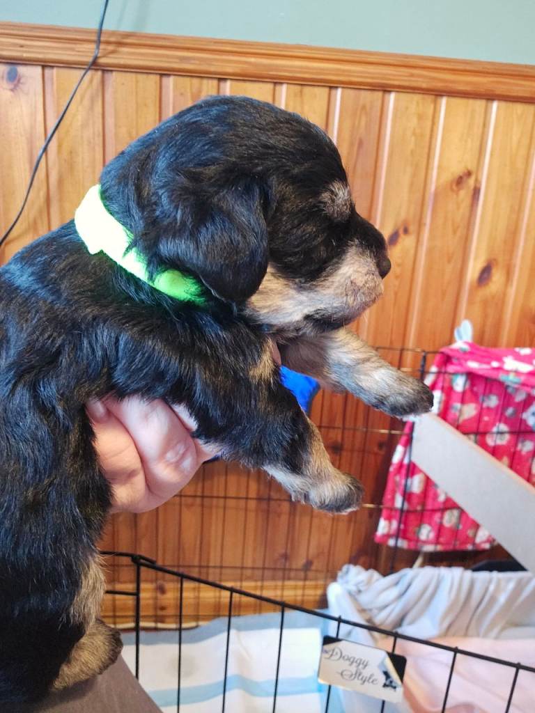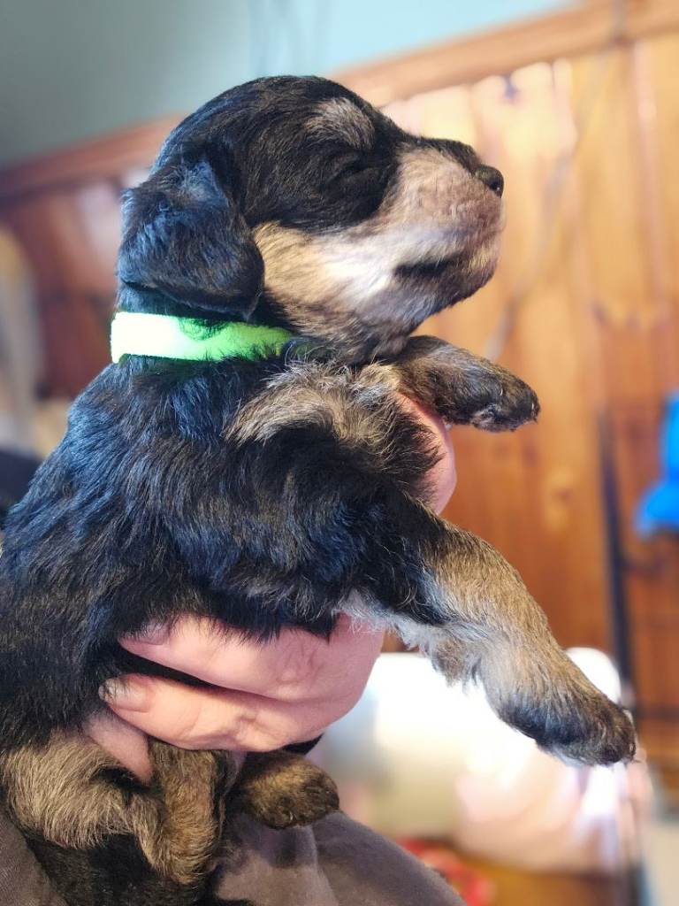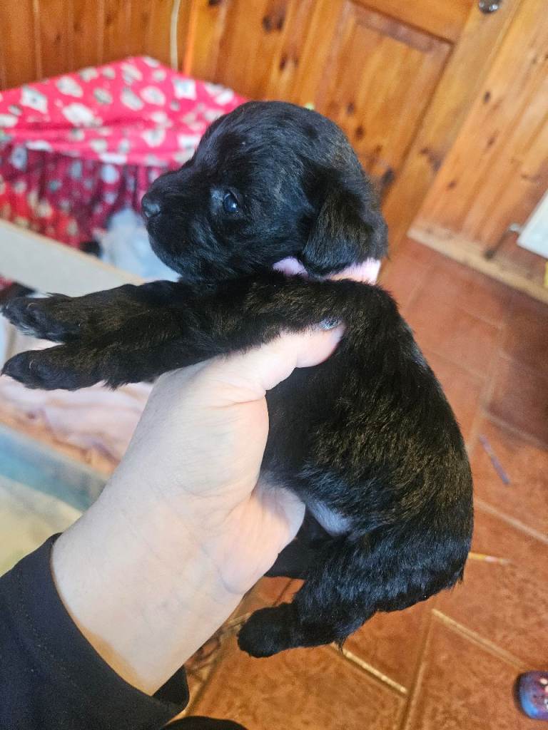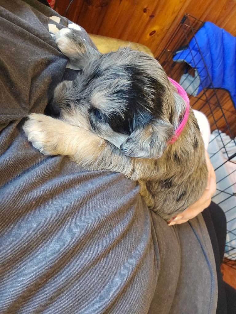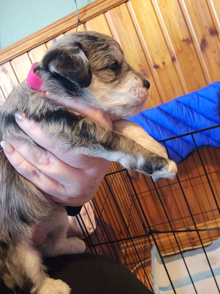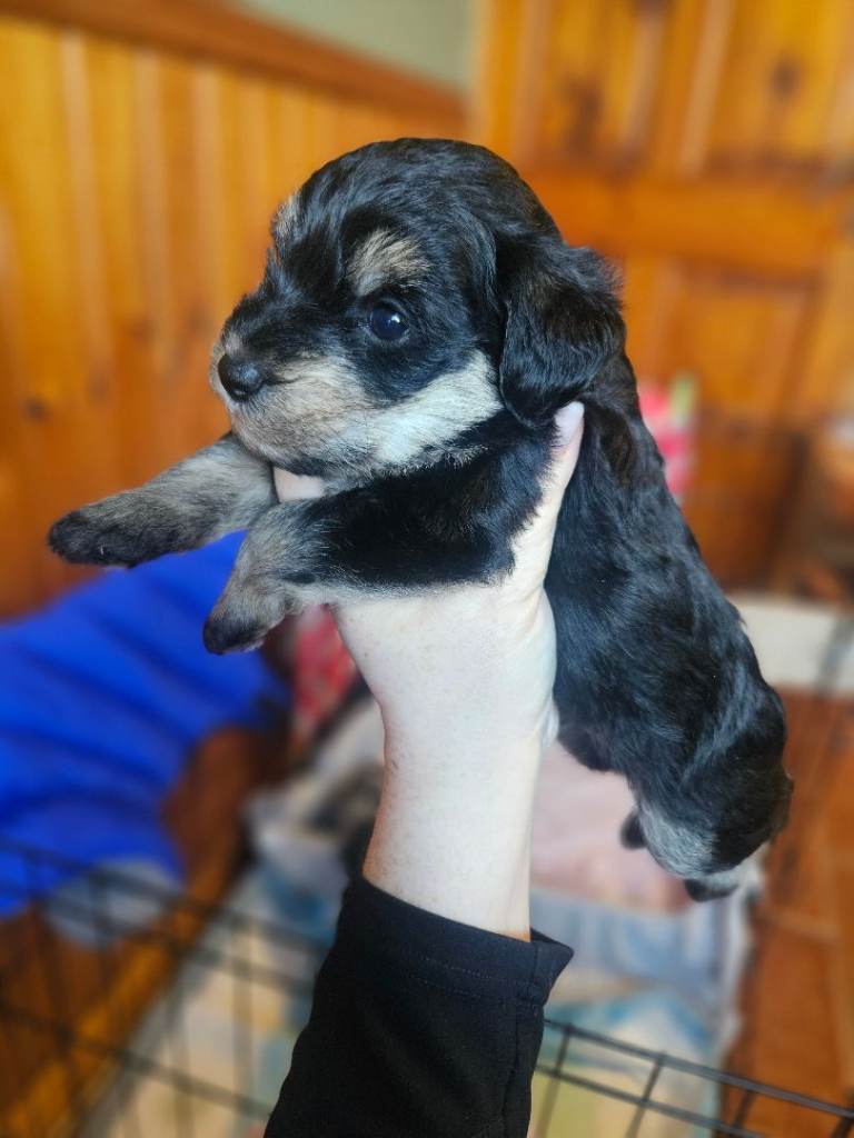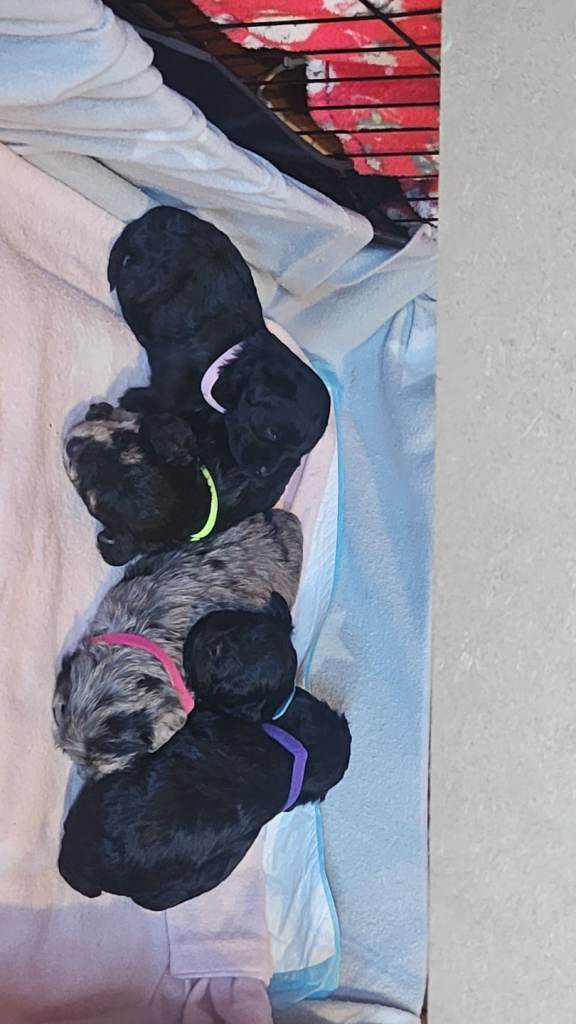 Mummy Bella is a miniature Schnauzer and daddy is a miniature merle poodle. 5 healthy babies, 3 bitches 2 dogs. Deposits required and are non refundable.