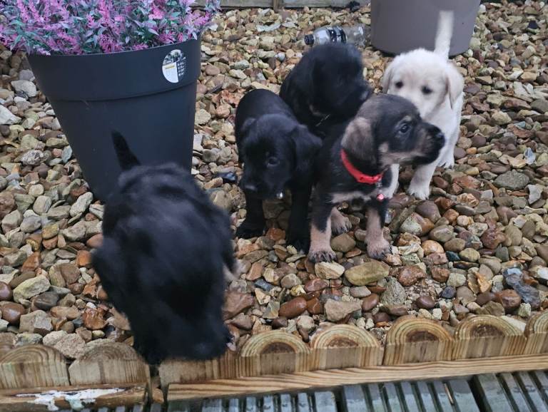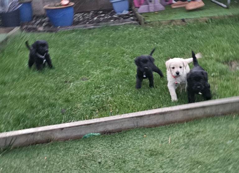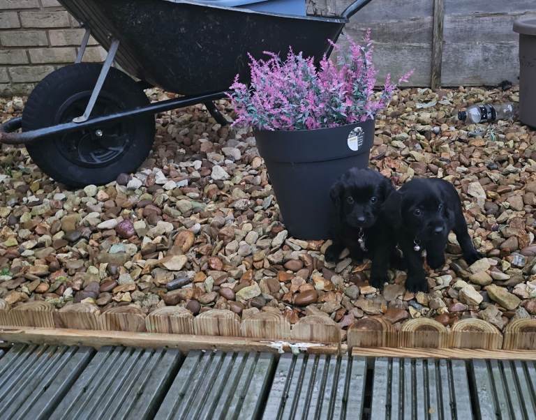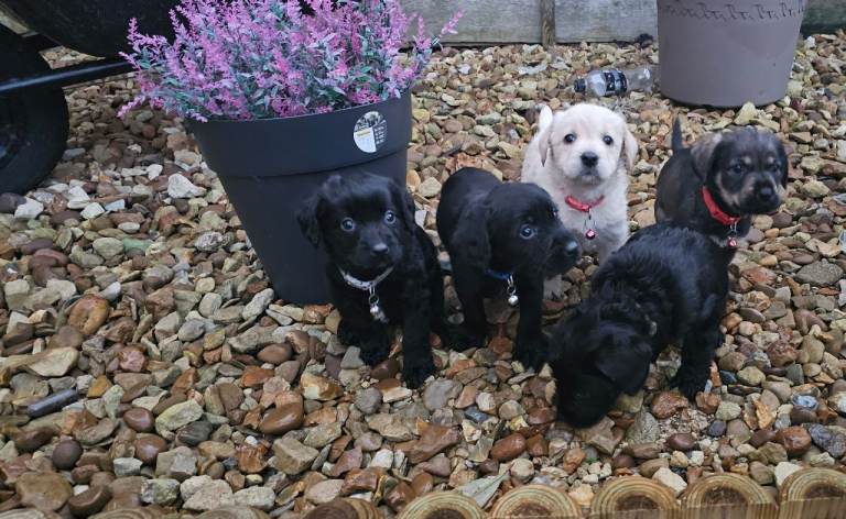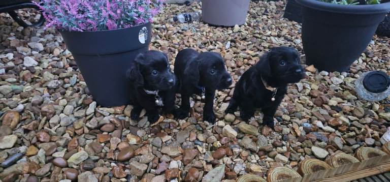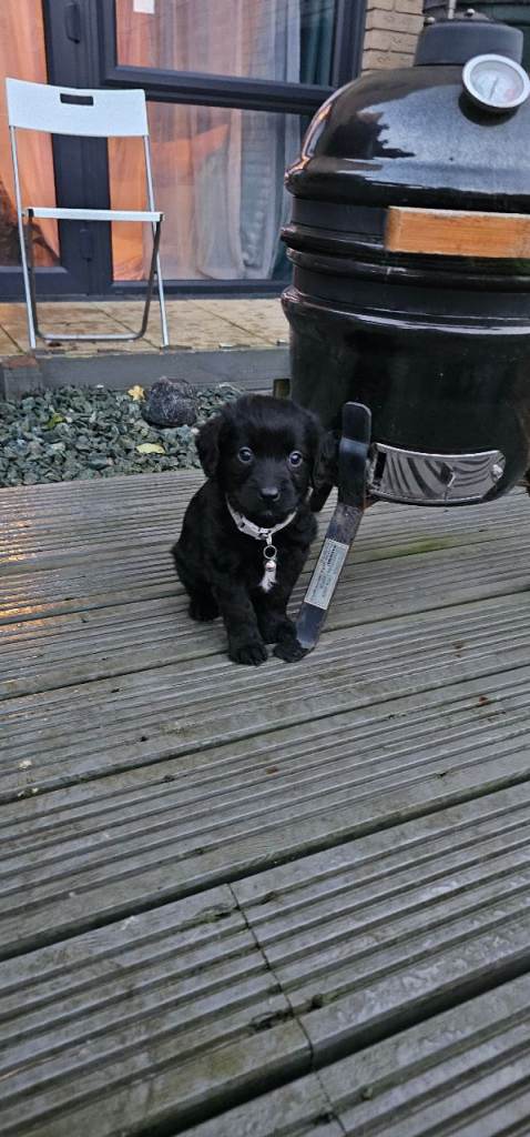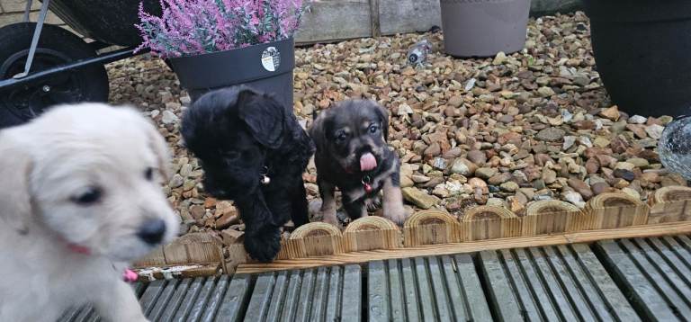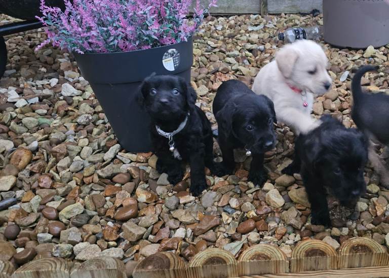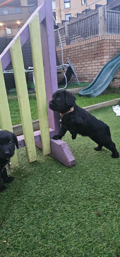 All the puppies are well socialised, have been around children of all ages, cats, other dogs and puppies. Normal houshold noises do not bother them at all as they have been exposed to them from birth. They are crate trained as a litter and we have made a fantastic start on toilet training (the accidents are getting fewer by the day!) They are playful, cuddly and the cutest little bundles. They enjoys sleeping eating and playing with their toys, eachother and my other dogs!!