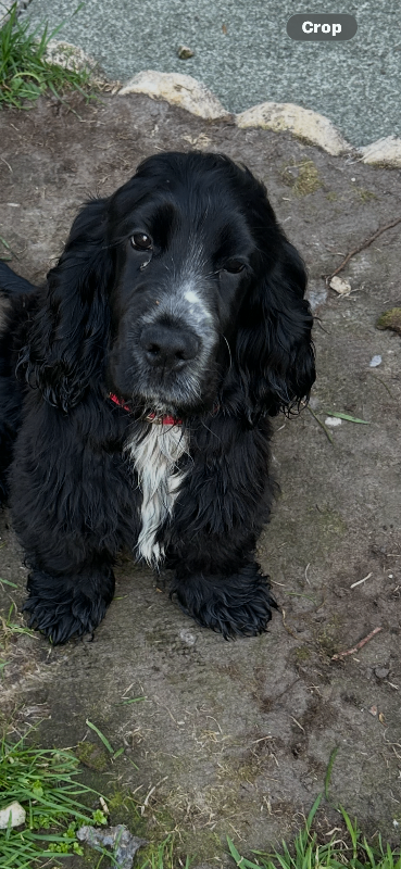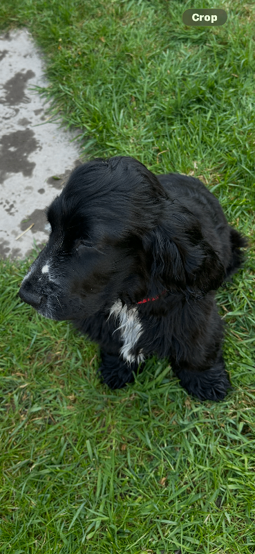 A beautiful cocker spaniel girl 90% I was trained must find this girl a new home as my partner has got allergies so unfortunately we cannot keep her. She has a beautiful girl. 90% house trained she will let you know when she wants to go out if she’s left on her own for a long period of time she might have the odd accident. She is not spayed. She is coming up to 6 months old good home only thank you.