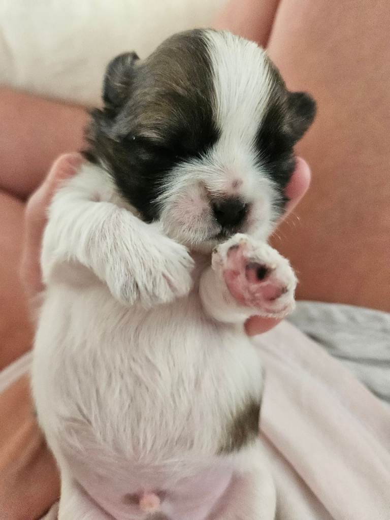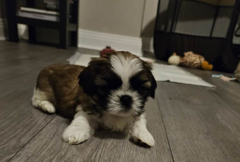 They are healthy, happy and very playful. We have 2 adult shih tzu in our home and these puppies love playing/terrorizing them!