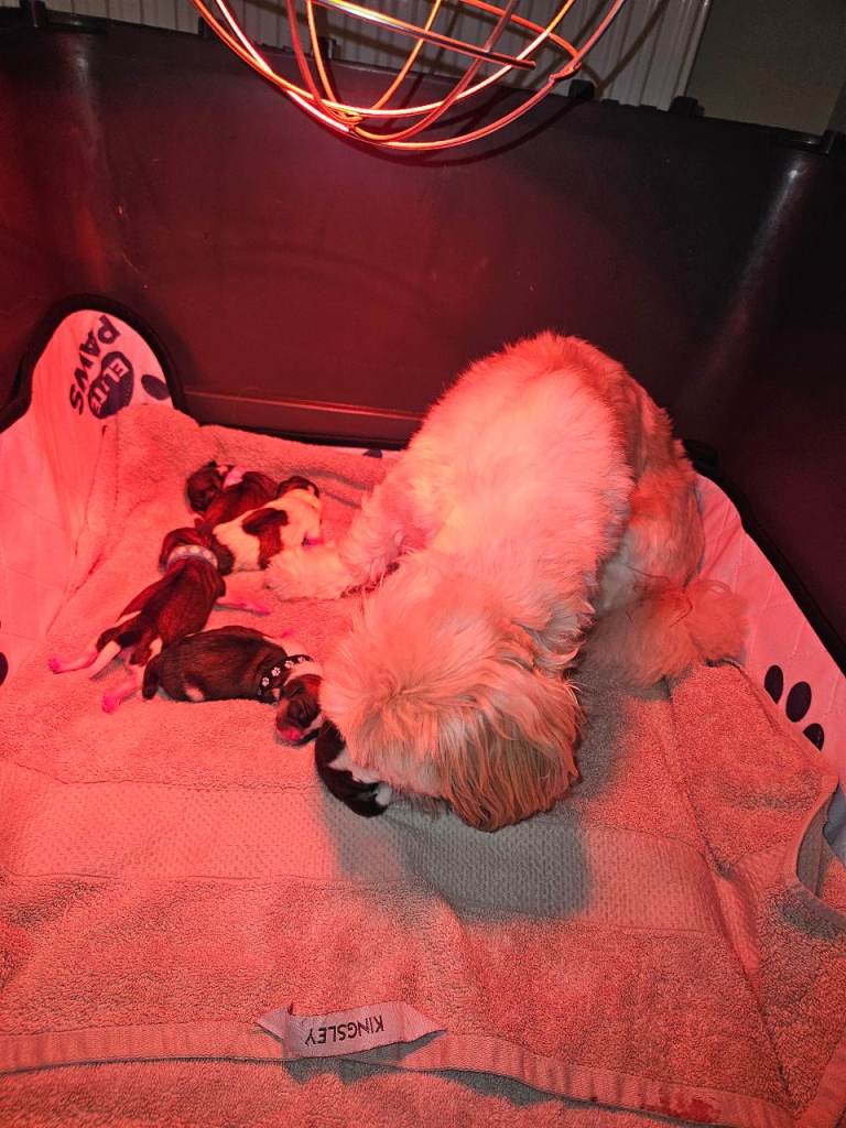 Our family pet, Bella has had her first litter of 5 puppies, 4 boys and 1 girl. Mum is a full imperial shihtzu.
