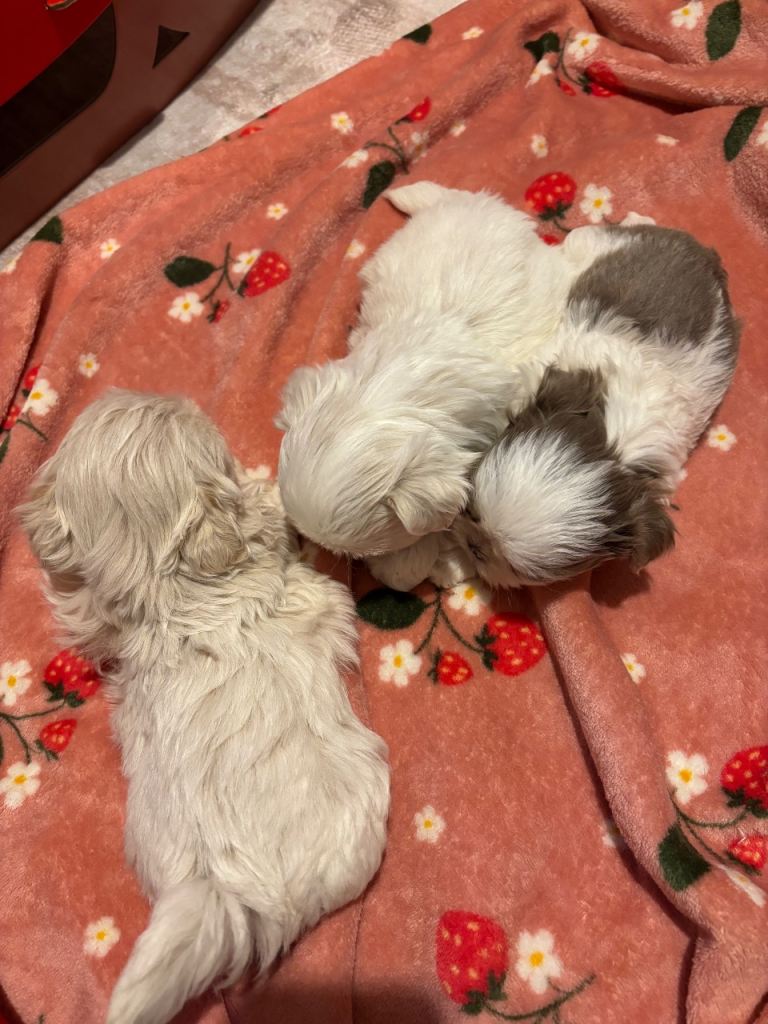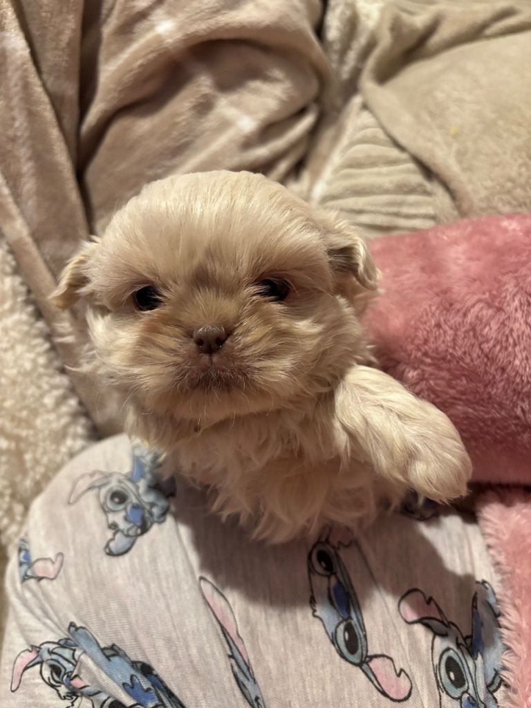 Beautiful family shih Tzu has had some beautiful babies. Mum brown as shown and dad velvet colours. Growing up in a family home with children and cats. The first one and last are males and the middle is a female.
