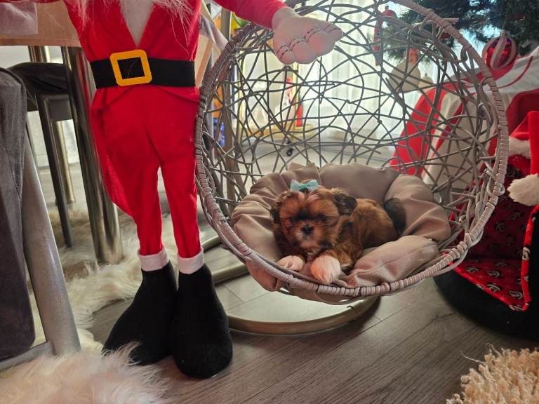 £1200 for Imperior Shih Tzu puppies ( wearing red bows) and £1000 from my other litter ( in blue bows). 🎅🌲