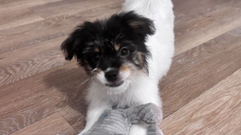 She is currently toilet training using puppy pads and is doing really well -- she just needs a bit more time and consistency to fully master it. As she is still young, she is teething, so new owners should be aware that she may nip if given the chance. We manage this easily with chew toys, which works perfectly and redirects her behaviour.