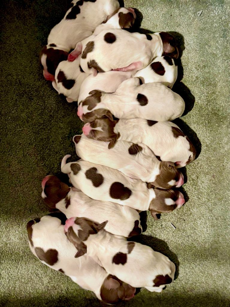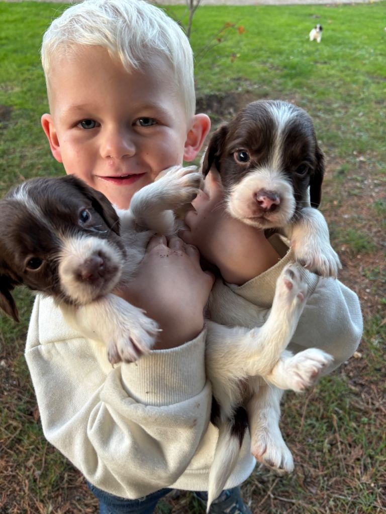 Raised around young children since birth they have full tails,are microchipped Flead and wormed upto date vet checked and lovely healthy pups.mother is in picture she is a lovely medium sized spaniel we have owner 4 generations of this line of spaniel.sire is the same size as dam also liver and white and a fantastic working dog.