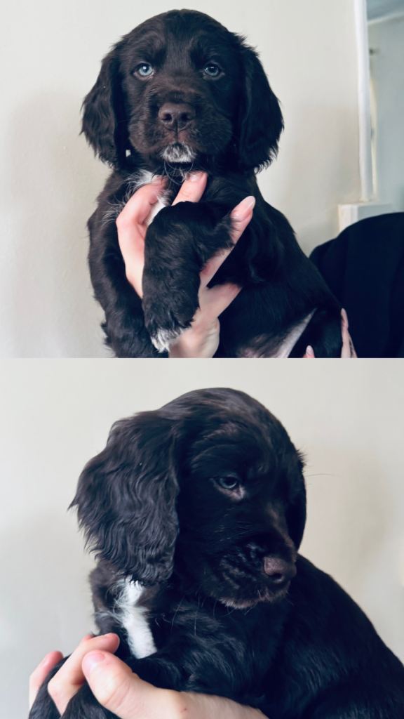 Our beautiful family Sprocker has welcomed a stunning litter of seven healthy, happy puppies, and we are now looking for loving forever homes for them. Both Mum and Dad are our much-loved family dogs, and you are welcome to meet them — they both have wonderful, gentle temperaments and are brilliant with children.