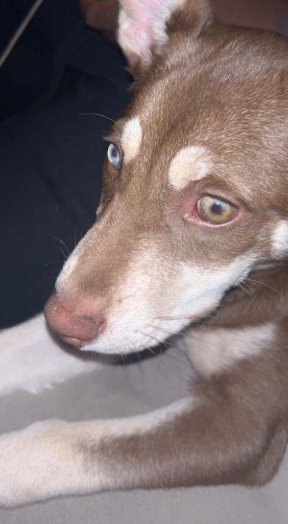 Has been raised with 2 young children and lived in a busy household. Dad is a Siberian husky and Mum is a Staffordshire bull terrier.