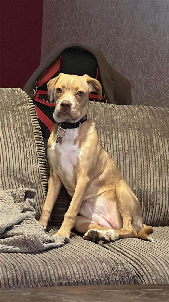 Female pup so lovable my son bought her and gave her to me, she’s so loving and beautiful but she has so much energy and really needs a home with land or a big garden,
