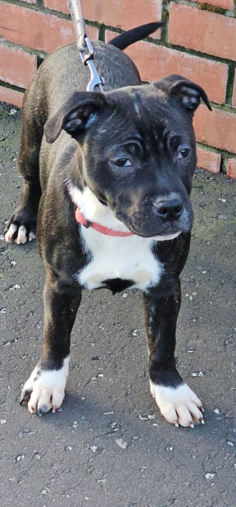 Posting for under a monthStaffordshire bull terrier pup