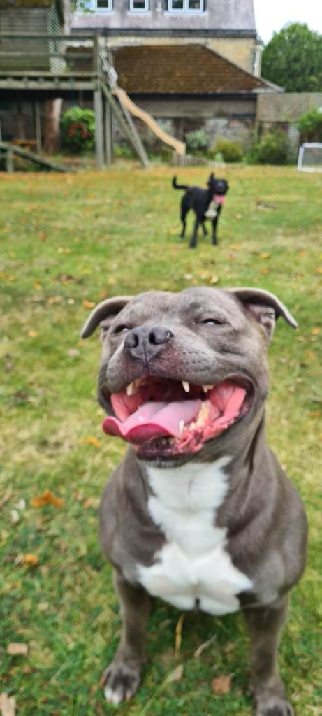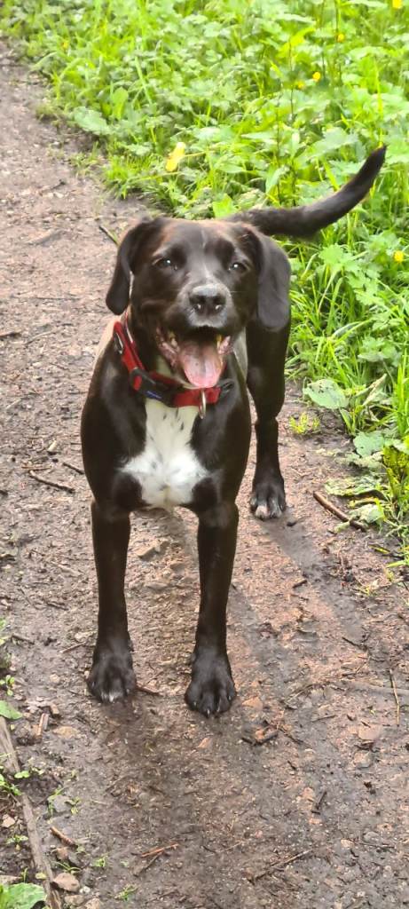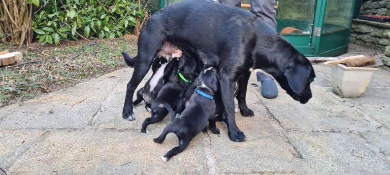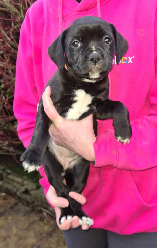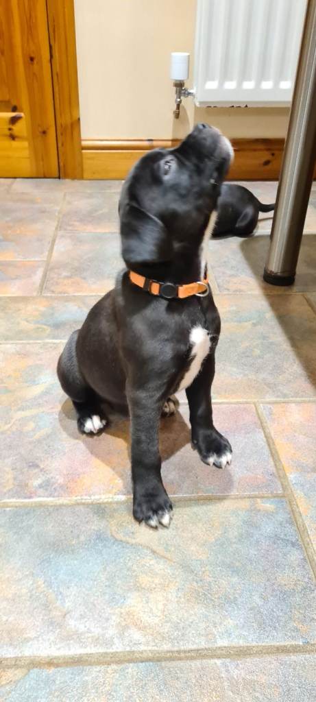 Mum is a black/white Staffy x Springer Spanial (pictured) and can be met when visiting the pup.