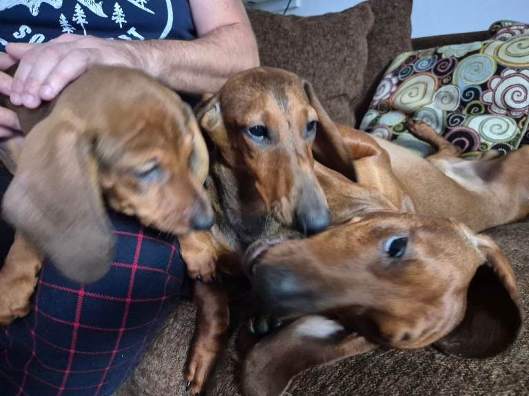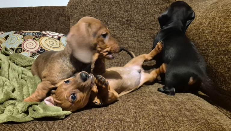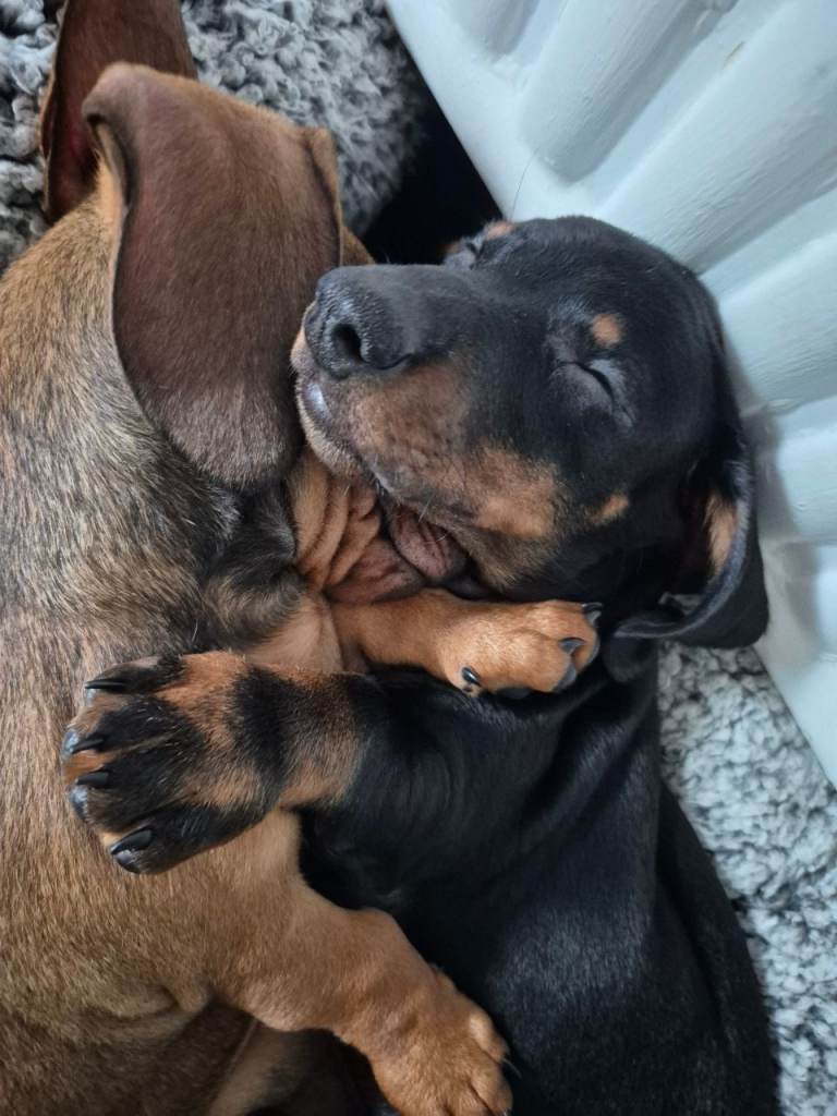 I have two gorgeous 12 weeks old boys left . They are ready for new forever home. Black & tan mum and red father. Father is KC registered. My dogs are awaliable for personal colection only.