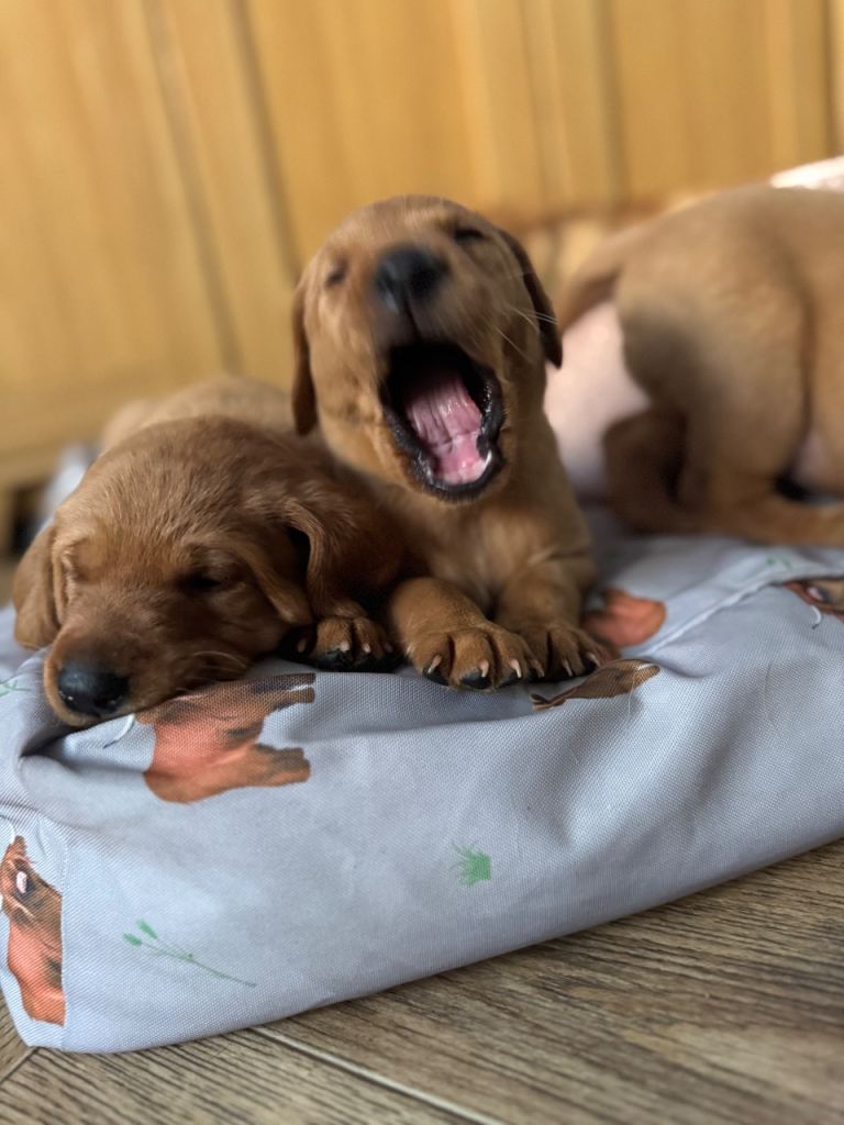 Our stunning girl Coco gave birth to 8 amazing puppies on the 1st December 2025! She had 5 Boys and 3 Girls! All stunning Fox Red!