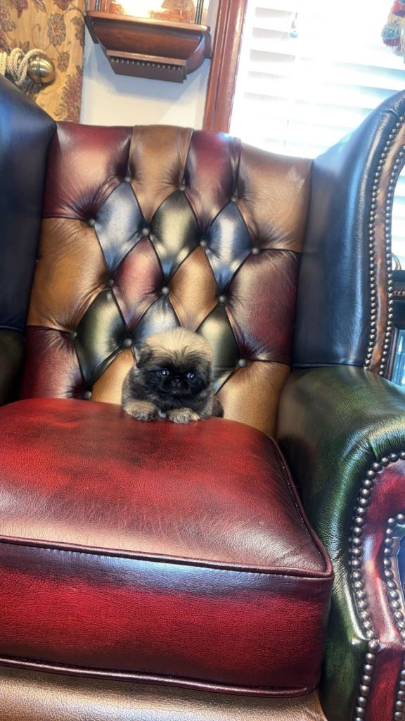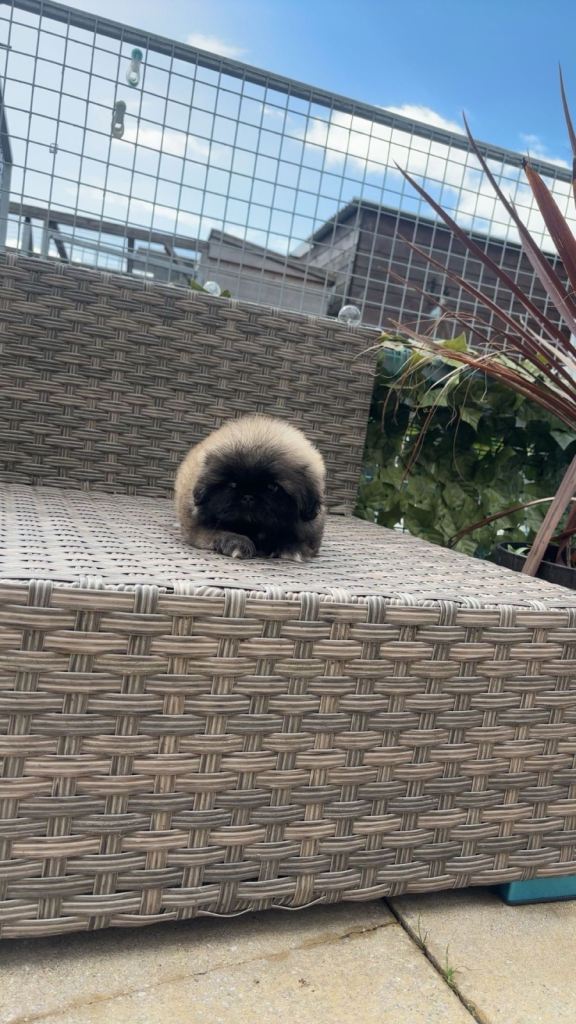 Stunning male Pekingese puppy available for sale in Newry. This brave little fellow is kennel club registered and comes from a litter of three, with only one male available. He is fawn with a distinctive black mask, showcasing the unique beauty of the breed. Both parents are lovely, with the mother being fawn and the father white.