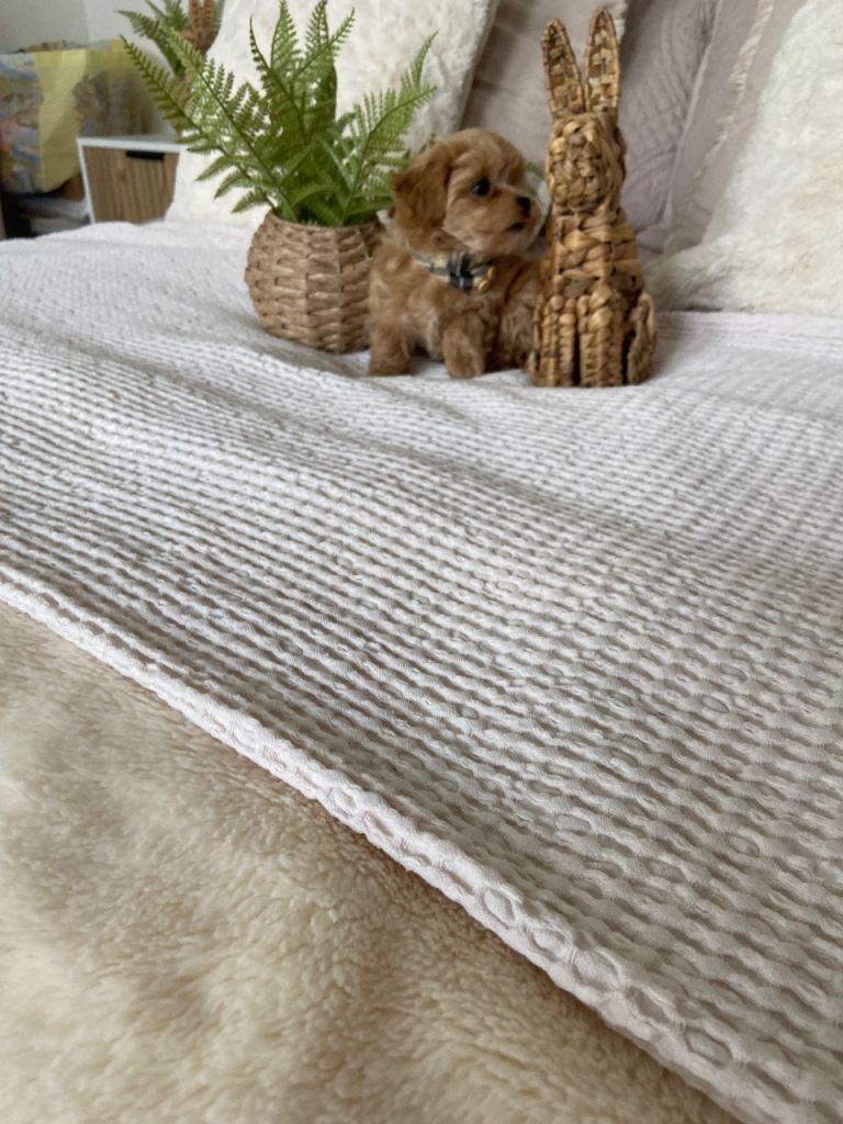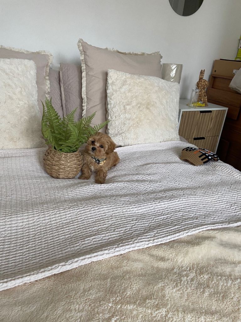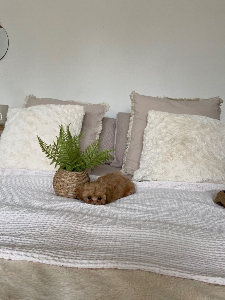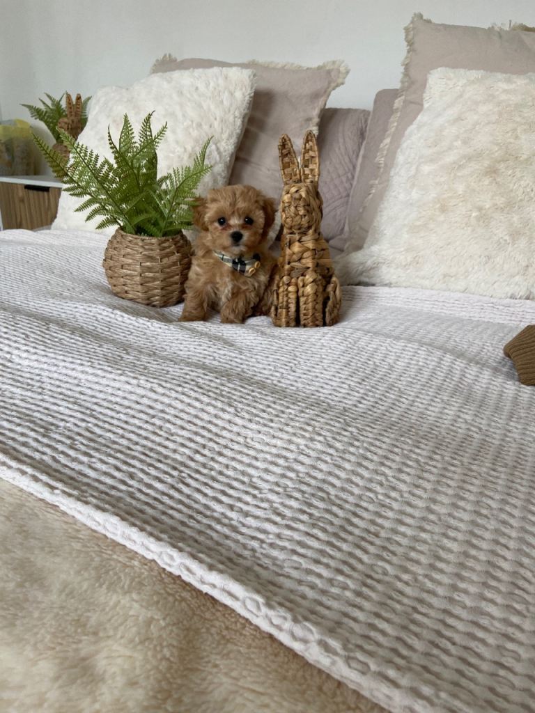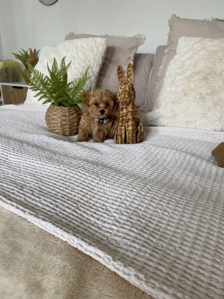 Hi this beautiful boy is looking for his forever loving family home his mum is from china tiny pure white Maltese dad is a tiny Asian poodle at 1.4 kg red in colour both parents have the most beautiful nature will be microchipped 1st vaccine and wormed to date will come with a large puppy pack to start him of with his life with your loving family anything else you want to know just ask me he is all ready to fly the nest