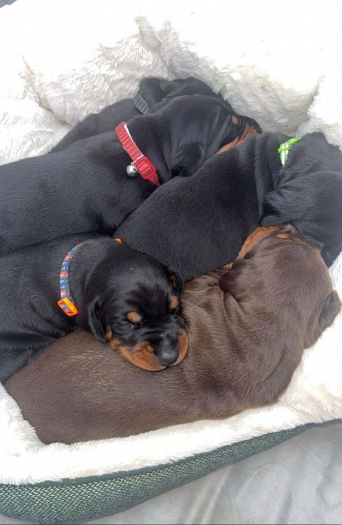 Please get in touch with any questions or to arrange to view the puppies. Both Xena and the Kaka are European style Dobermans with deeper chests, longer legs and larger faces.They also weigh considerably more than an American style Doberman.