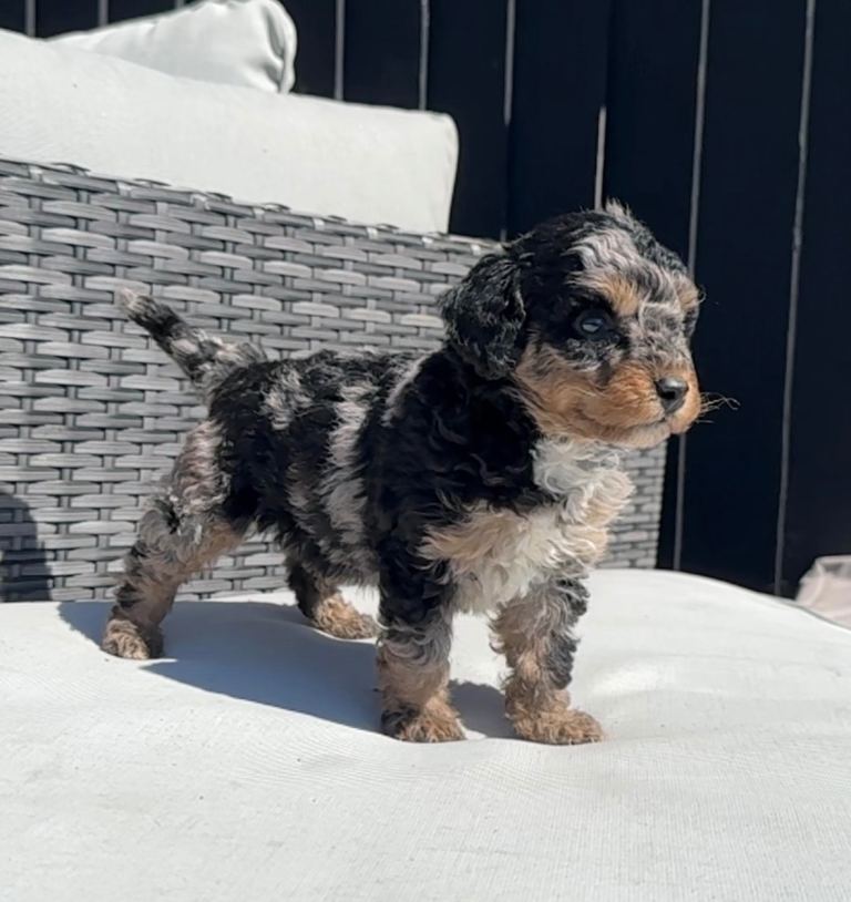 Beautiful Toy Phantom Poodle puppies looking for their forever homes. These stunning little pups have gorgeous phantom markings, loving personalities, and playful temperaments. Raised in a caring family environment, they are well socialised and used to everyday household sounds.