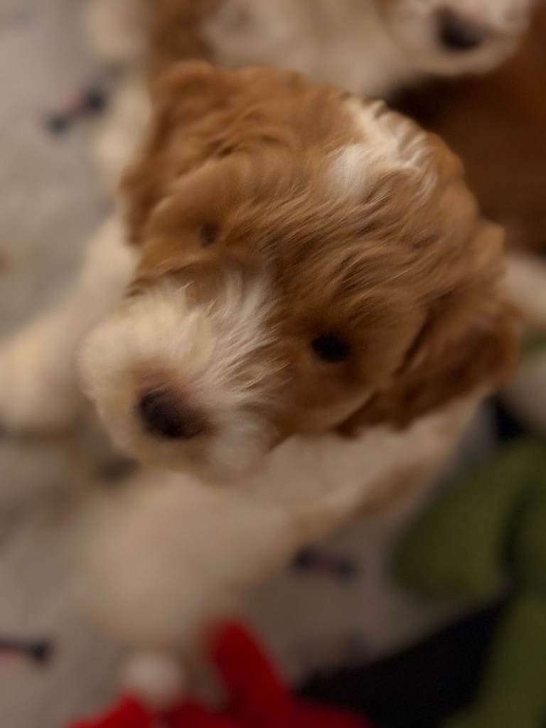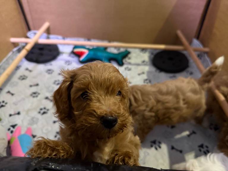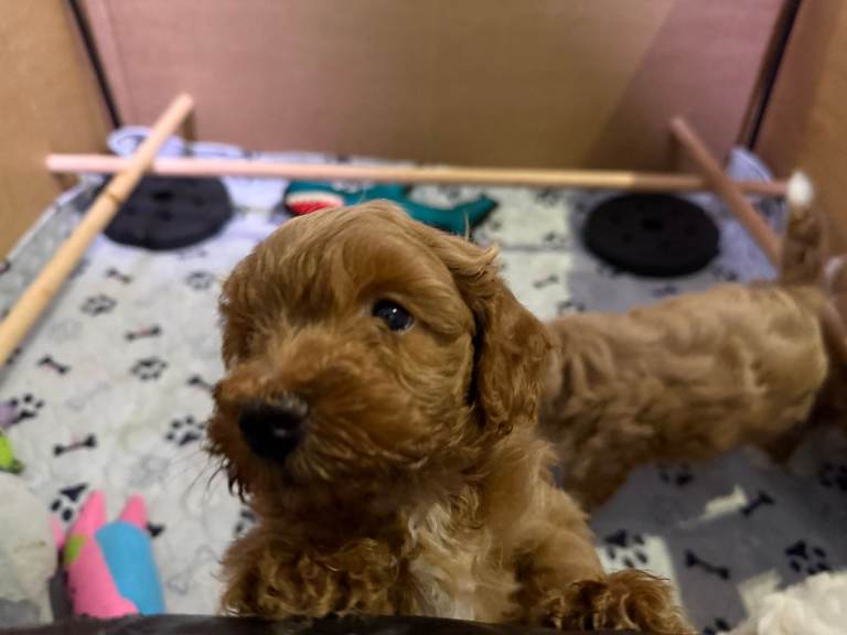 We are delighted to offer our beautiful Toy Poodle x Cockapoo puppies to loving forever homes. Clean bill of health given by the vets 17/03/26, Vaccination up to date and microchipped. These little bundles of joy are the perfect mix of intelligence, affection, and playful energy.