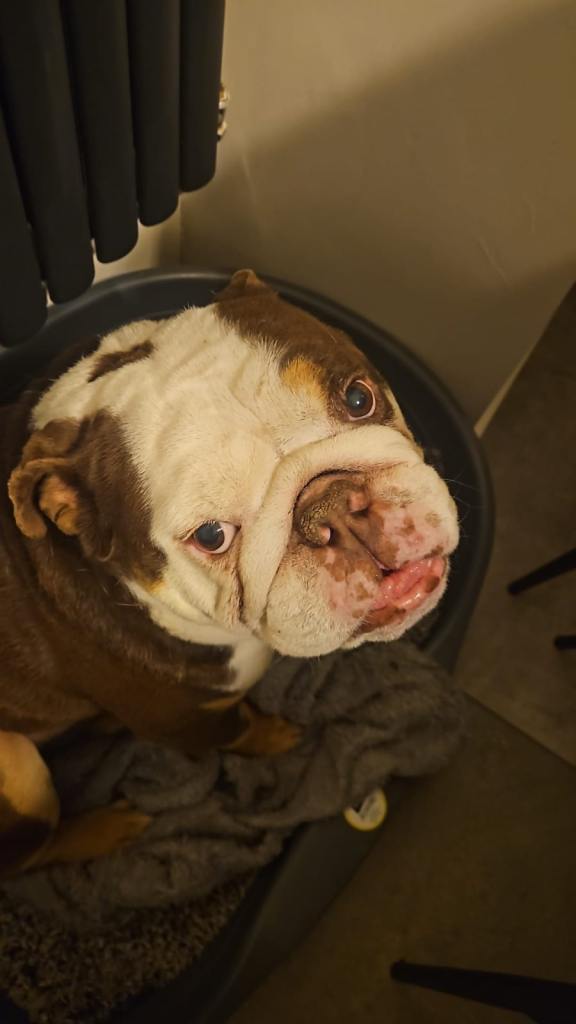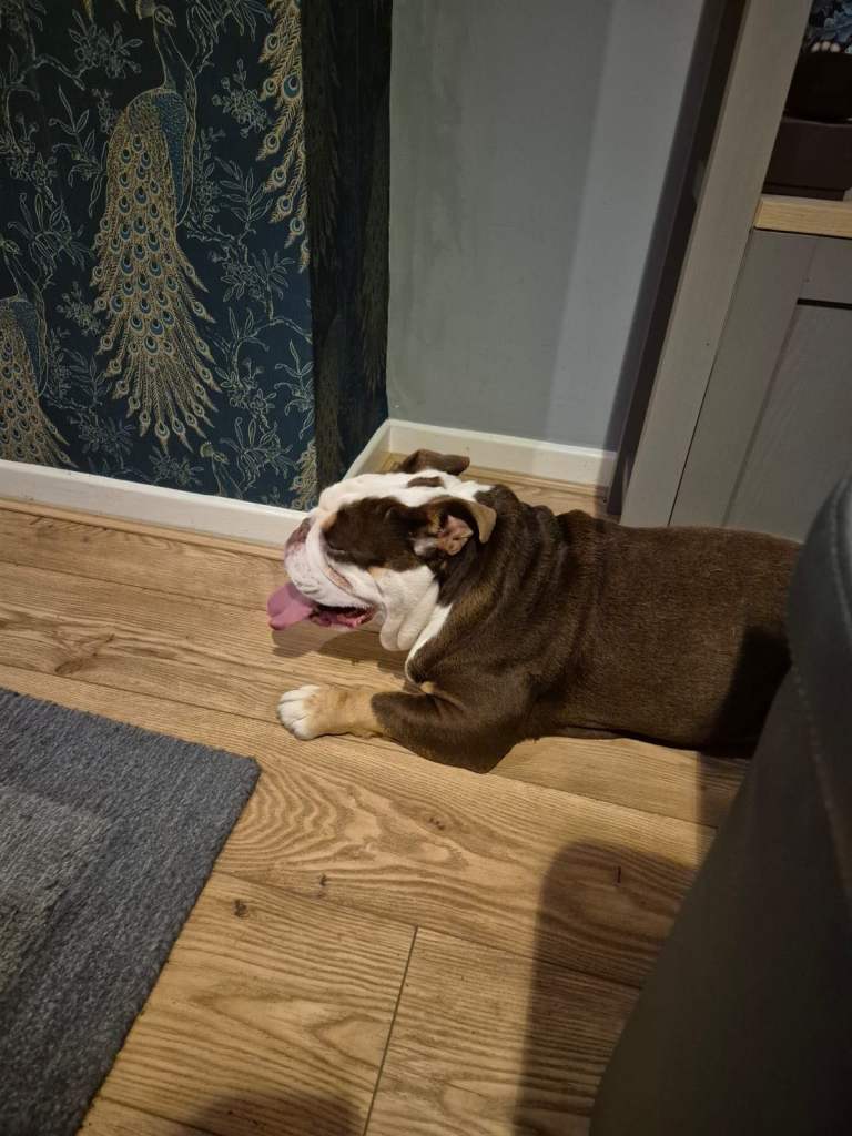 charlie is 5 years old and a tri chocolate bulldog we are having to rehome him through no fault of his own he has been our family pet for 5 years we have 3 children and he is a brilliant dog