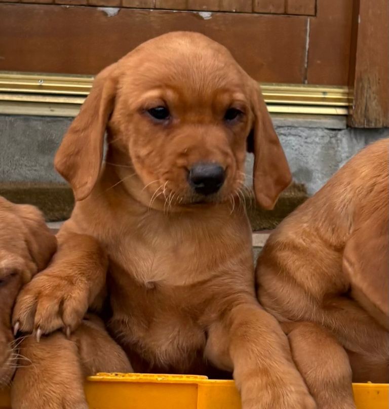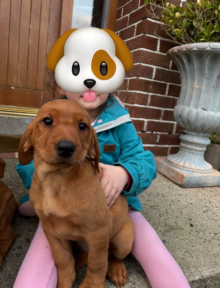 9 weeks and 2 days old ready for her forever home. Beautiful and friendly pup who has been around children. Mum is a Hungarian vizsla and dad A working red lab