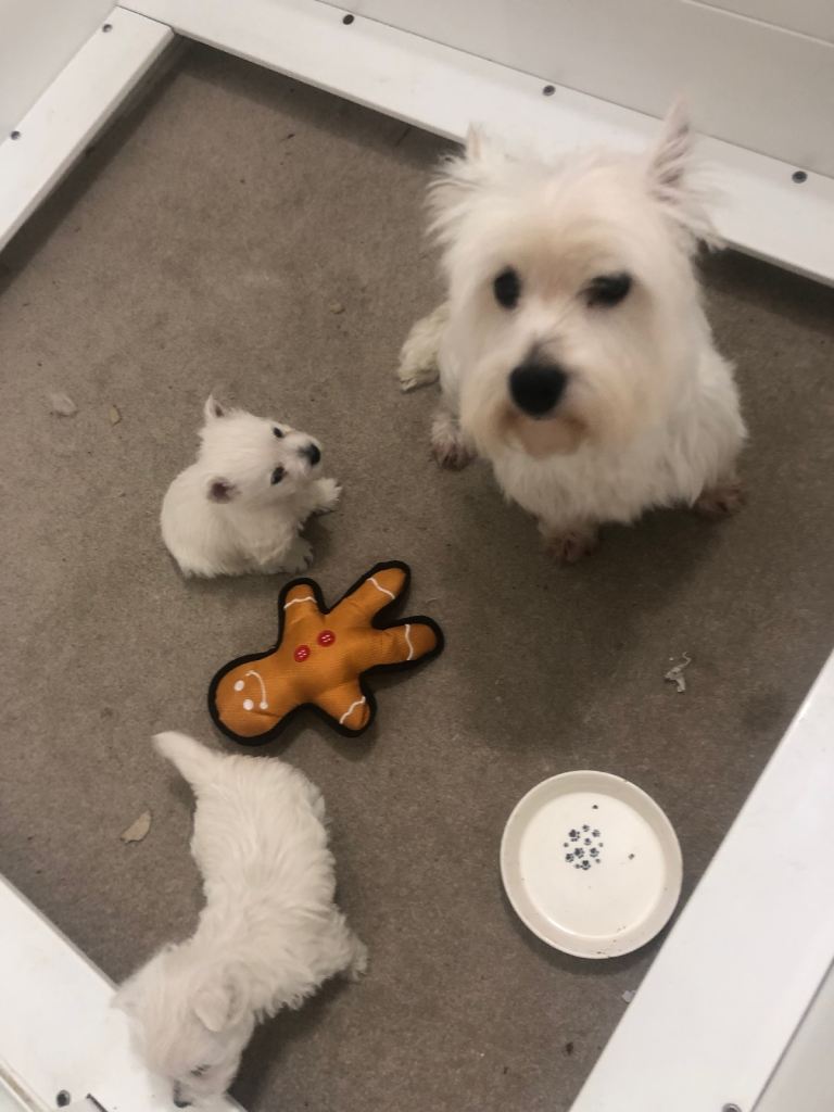 We have one boy puppy for sale who is microchipped and had first vaccination, he has been vet checked with no problems and is the perfect weight. He is up to date with worming and flea treatment is doing well with paper training, both parents are k.c., registered but he is not 5* family home wanted, all information about microchipping, feeding and worming will go with him when he leaves plus food. Please ring for any further information.