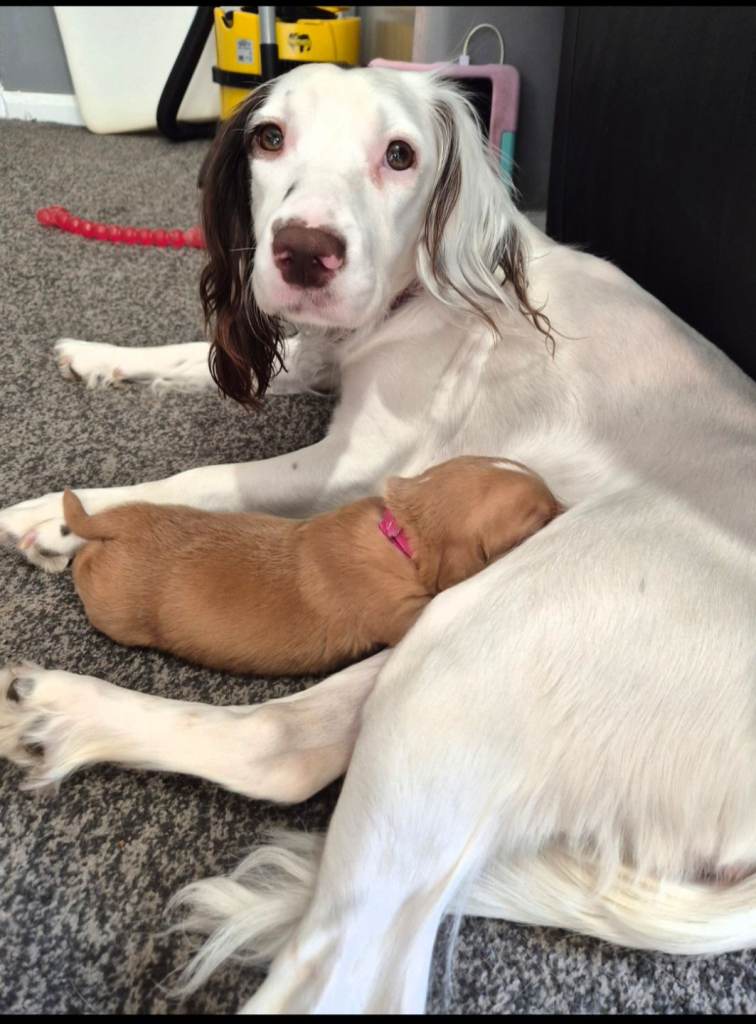 X1 gorgeous girl springador Puppy for sale 9 weeks old. She has been microchipped, flead, wormed and has had first injection. Mam and dad can be seen also as they are family pets. Great with children also. Ready to leave.