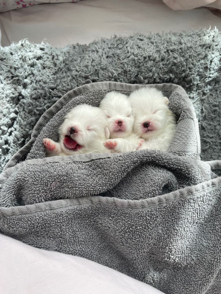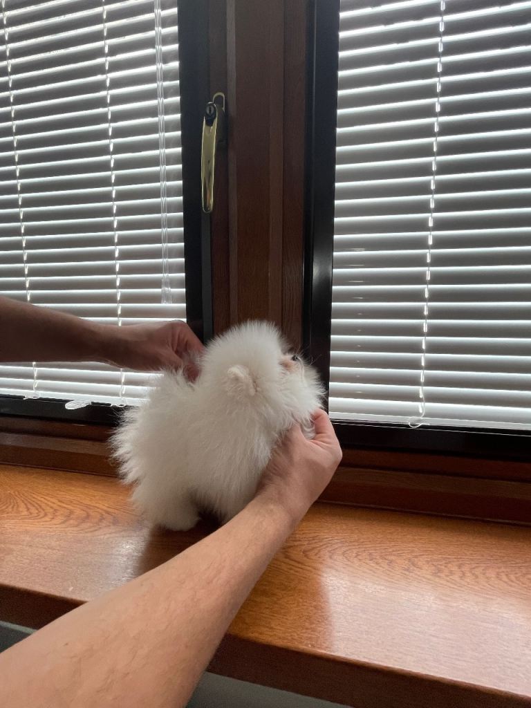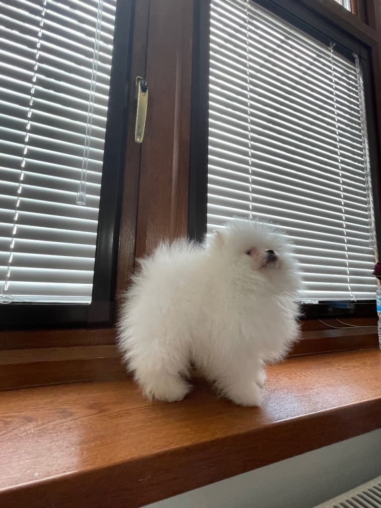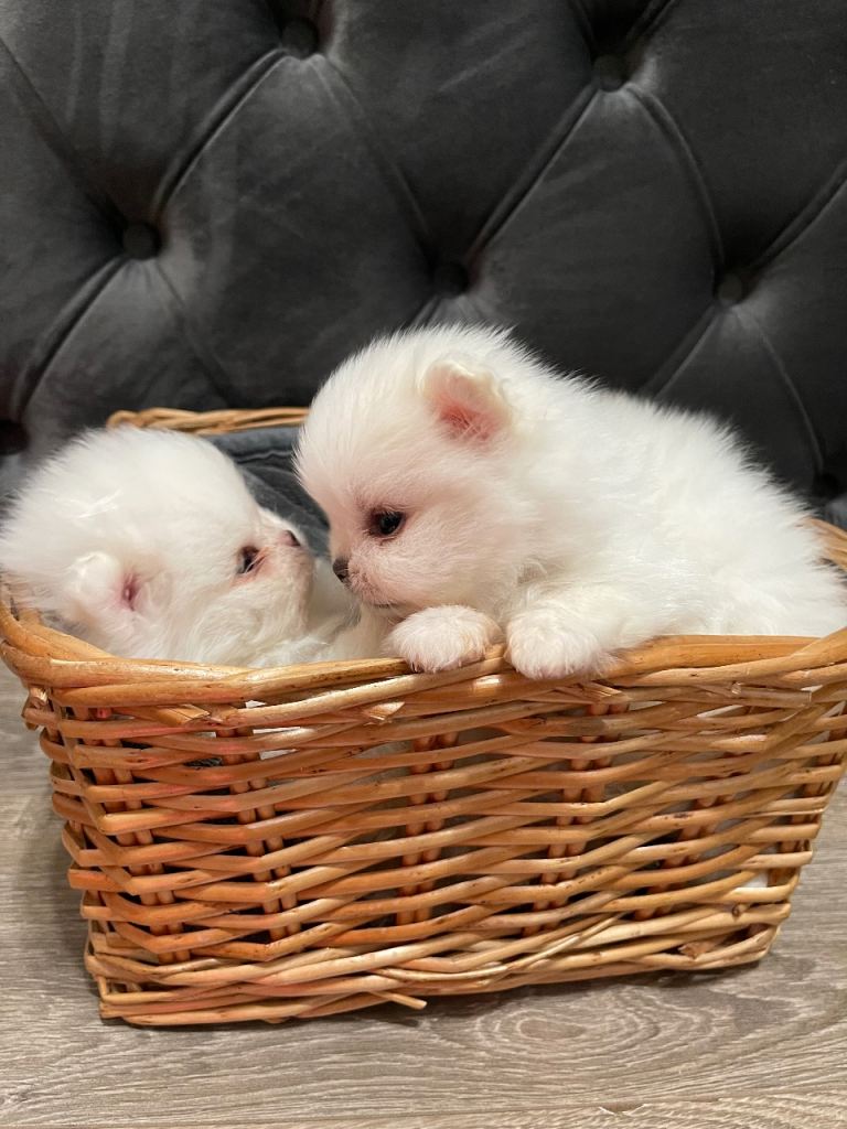 Pure white puppies come from strong Korean blood lines , very good example for this breed. Ancestors are pure white no cream mix. Dad and mum they are our family pets , Dad is Bikachu is the famous stud in Uk , he is 1.7kg , all his puppies are white and small size, Mum is muchi she has a very good character 1.9 kg and all her puppies are amazing with kids and other animals, the puppies had the first vaccine , microchip and dewormed. They ready to go only for good family they can give them love and attention.