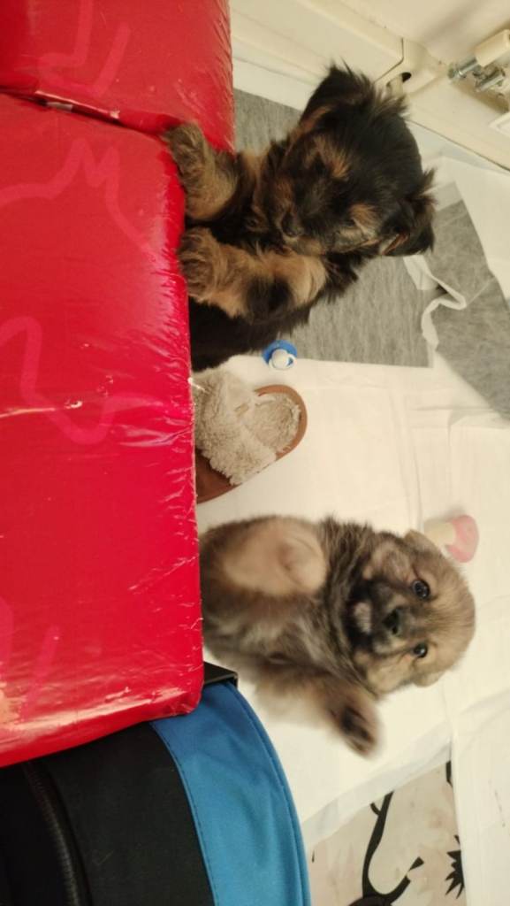 Price dropped 100 due to these puppies fi ding their forever home, 2 male puppies left, rocky and milo 1 black and tan, and 1 brown, beautiful colours, and 1 is going to have the pomeranian coat, the other is more yorkie, their mother is pomeranian , father is yorkshire terrier, used to children, £100 deposit secures sale till pickup, they have had their first vaccination and will have their 2nd in 4 weeks time, really nice temperaments, ring for further details or message on number provided, no time wasters.