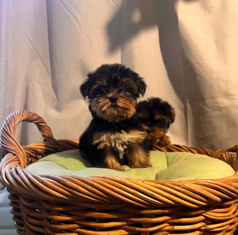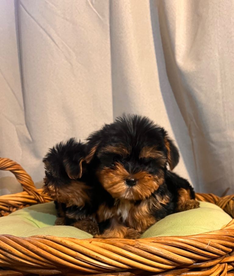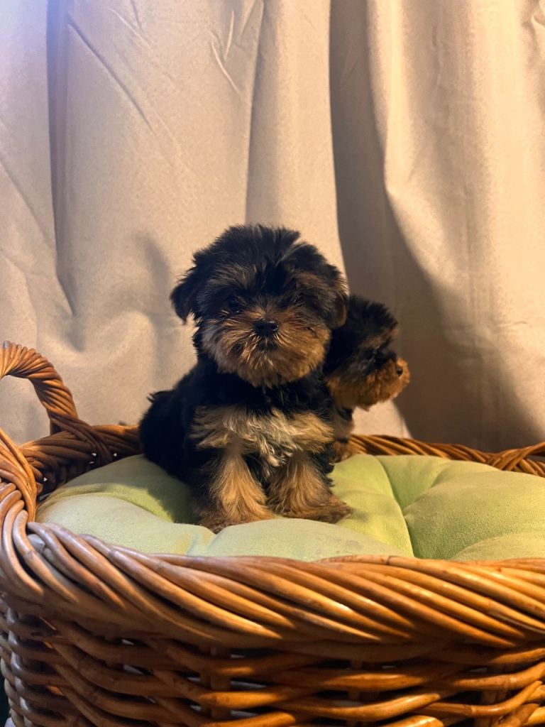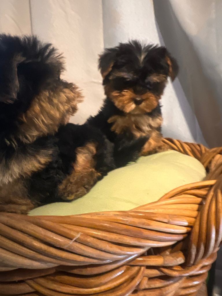Yorkshire terrier boy and girl both have been to the vet and had a full health check vaccinated microchipped wormed they are pad trained mum is here with them so she can be seen with her baby’s mum and dad both miniature Yorkshire terrier with full pedigree certificates
