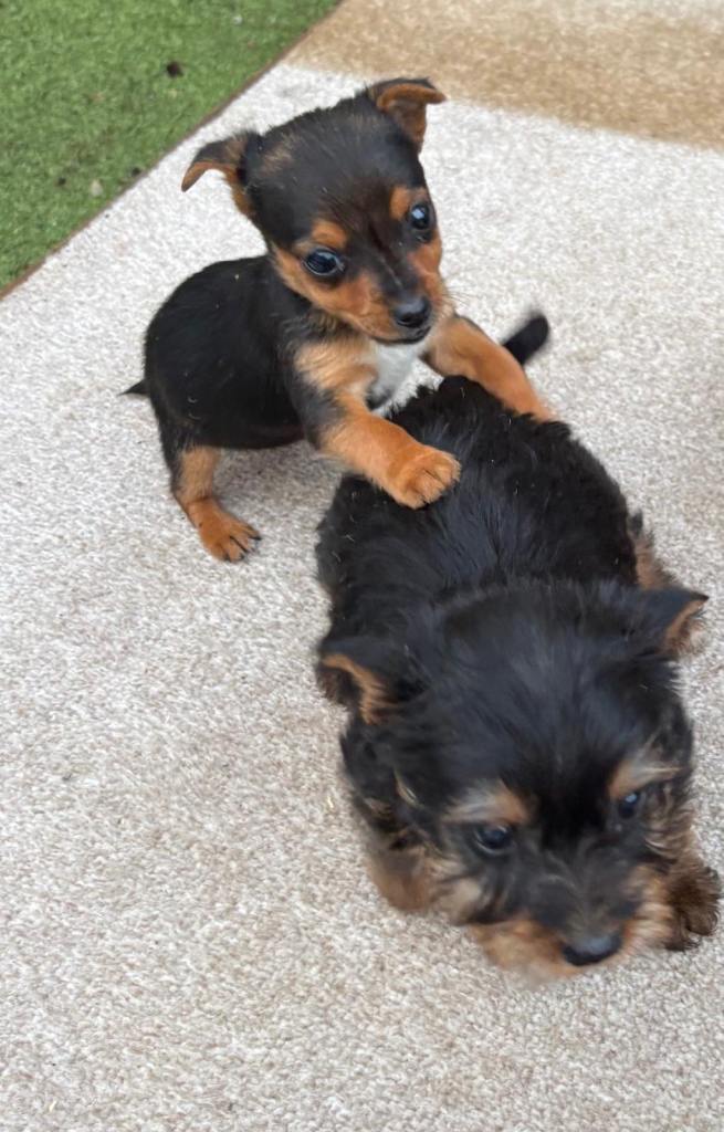 2 male Yorkshire terrier cross Jack Russell puppies one smooth coated one broken coated.