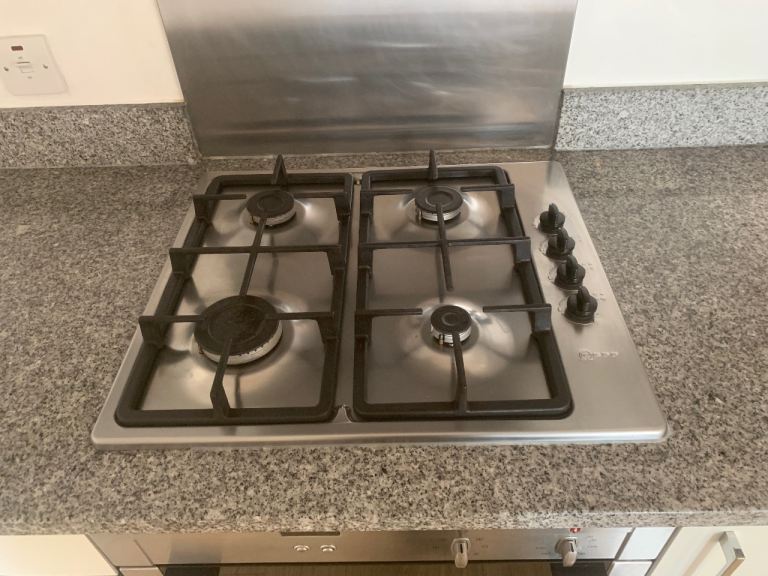 Kitchen: Oven, hob, fridge/freezer, and extractor fan.