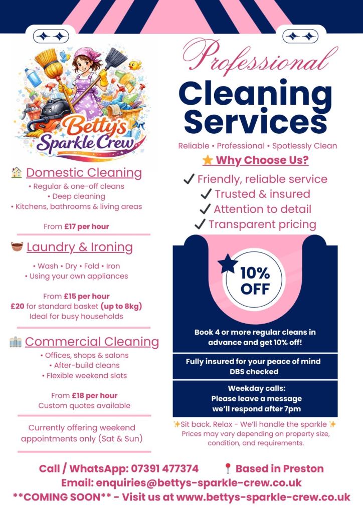 • Weekly, Fortnightly & One-Off Cleaning Plans 🗓️