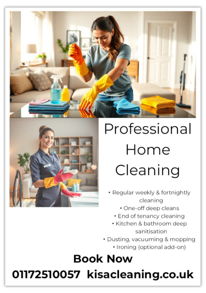 ✔ Regular domestic cleaning (weekly / fortnightly)