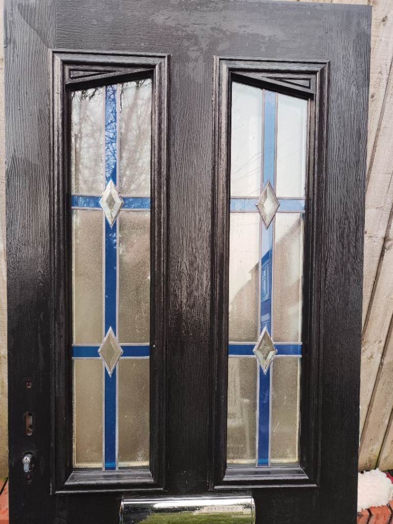 Black single up and over garage door spring assisted in steel frame making installation very easy. Complete with locking door and and 2 keys. Overall width 2.59m x Overall height 1.97m including 60mm box section frame.