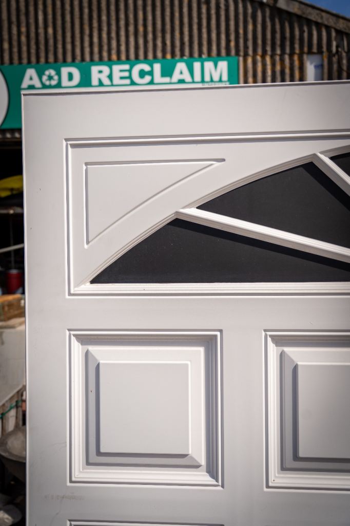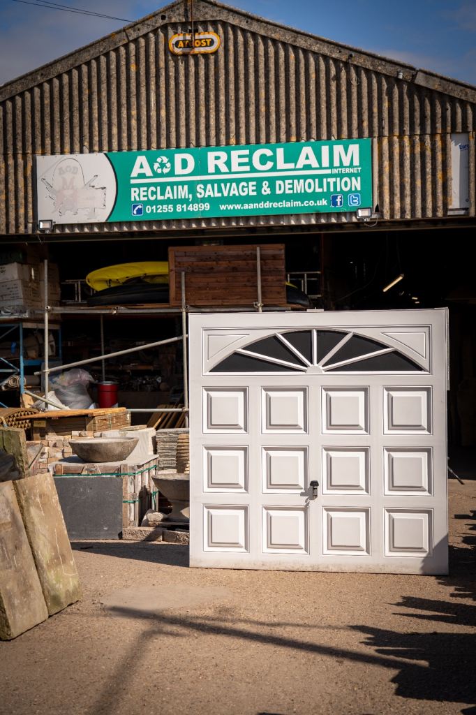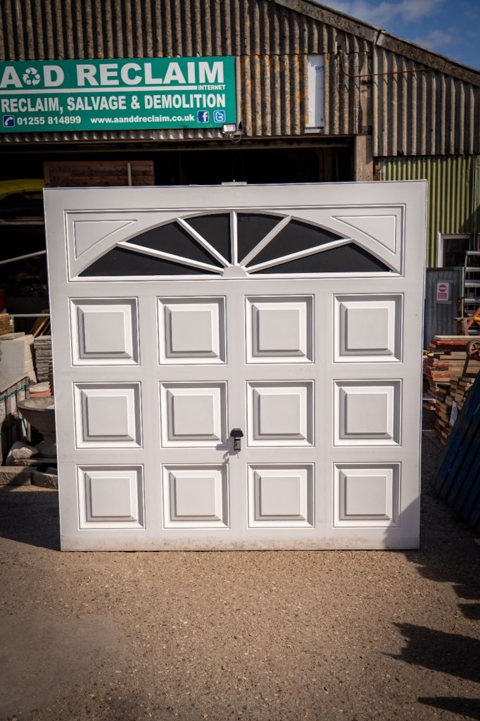 225A second hand Sunburst Fibreglass up-and-over Garage Door available now with fittings at A&D Reclaim for just £225.